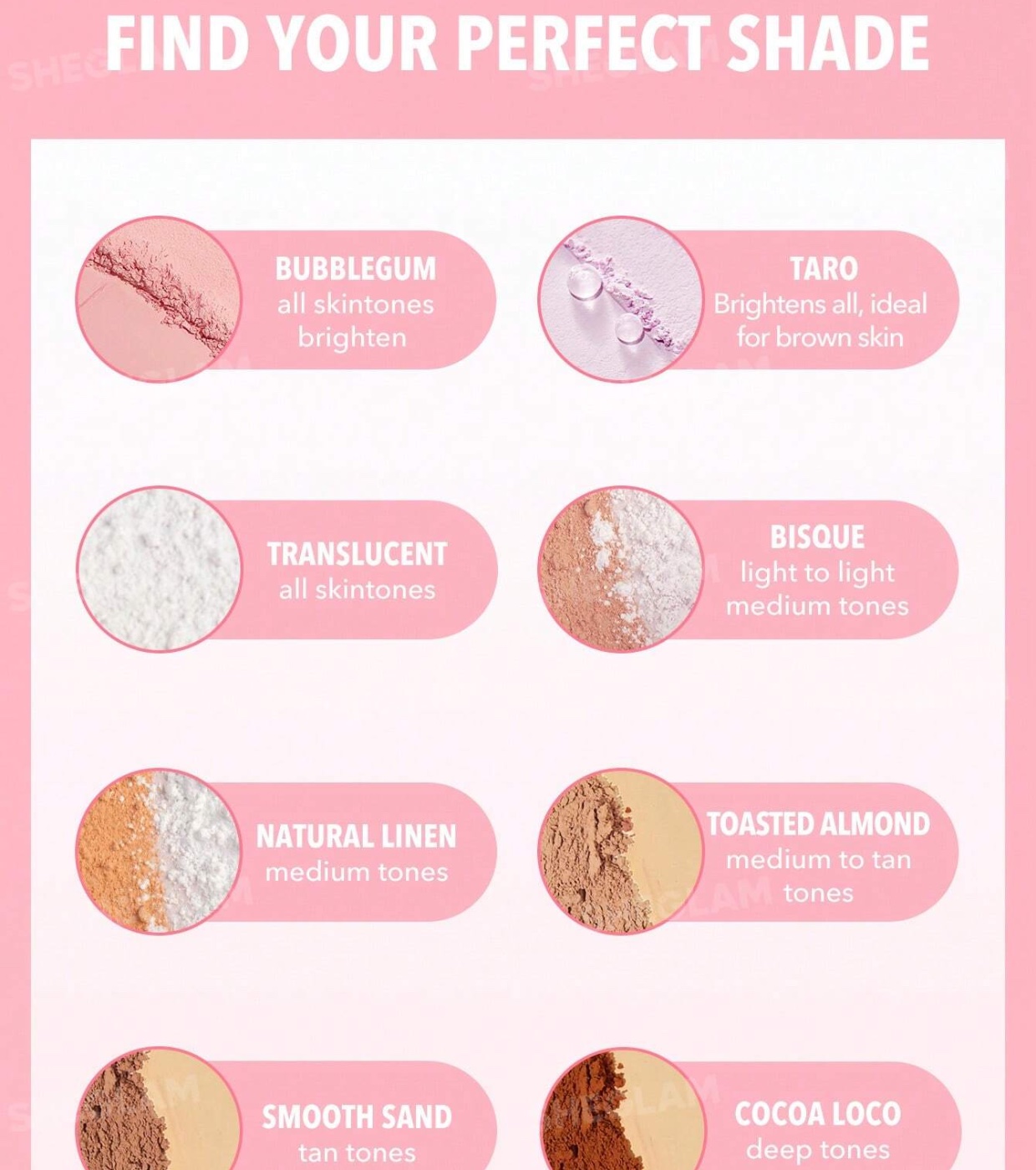 Du und dein Make-up – ein unschlagbares Team! Lass es nicht verblassen. Integriere das Insta-Ready Face & Contour Setting Powder von SHEGLAM in deine Routine. Es versiegelt, glättet und sorgt für einen perfekten Look, der stundenlang anhält.