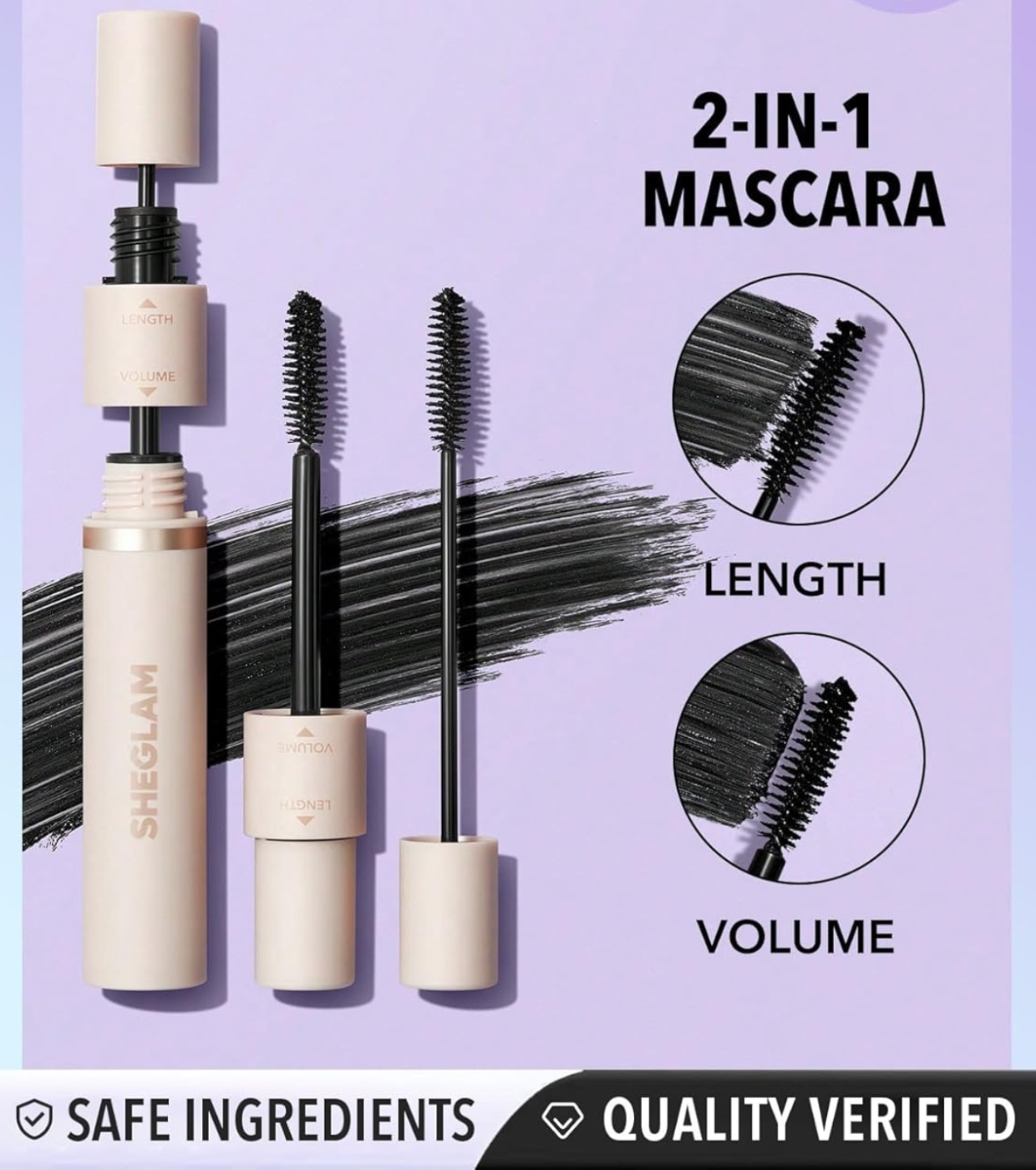 Entdecke die neuen besten Freunde deiner Wimpern! Die Lash Besties 2-in-1 Mascara von SHEGLAM vereint Vielseitigkeit und Leistung dank ihrer zwei verschiedenen Köpfe, die den gewünschten Effekt erzeugen.