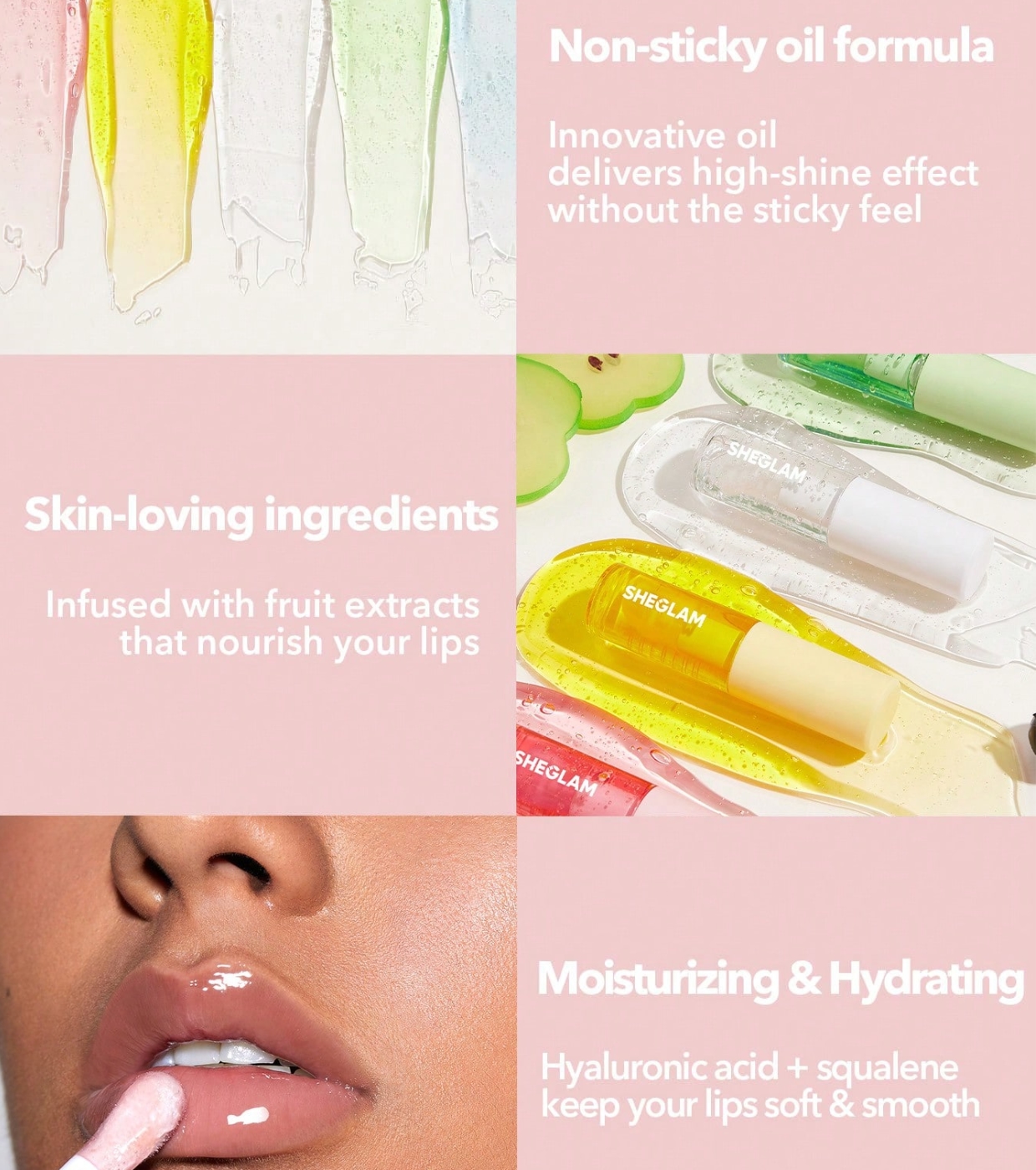 Gönnen Sie Ihrem herkömmlichen Lipgloss eine Pause und entdecken Sie das feuchtigkeitsspendende Lippenöl SHEGLAM – die perfekte Alternative für saftige, geschmeidige Lippen ohne klebriges Gefühl.