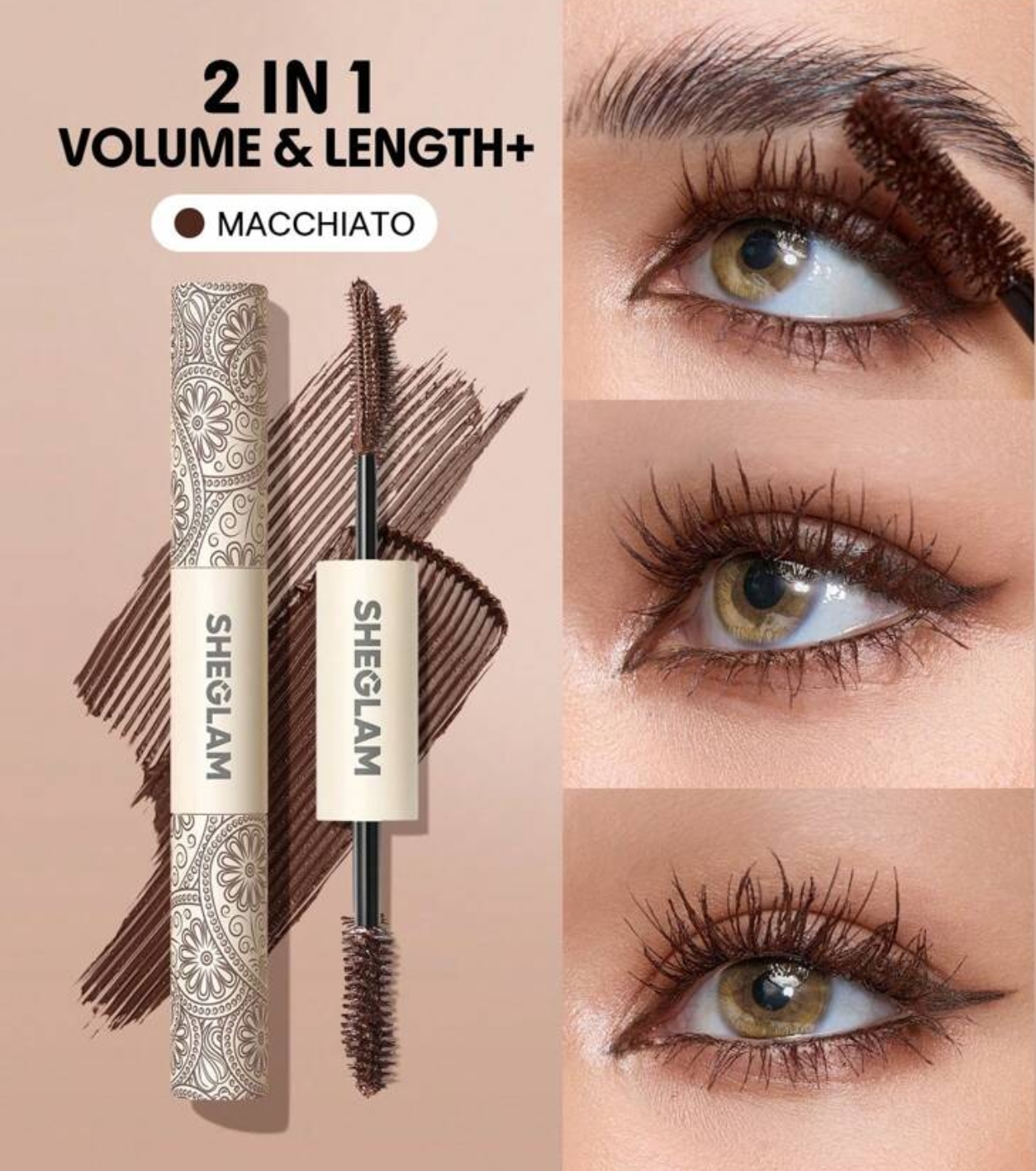 Mit der All-in-One Volume & Length Mascara von SHEGLAM erhalten Sie maßgeschneiderte Wimpern. Diese innovative Mascara verfügt über eine Doppelbürste und zwei verschiedene Formeln für ein vollständig individualisierbares Ergebnis.