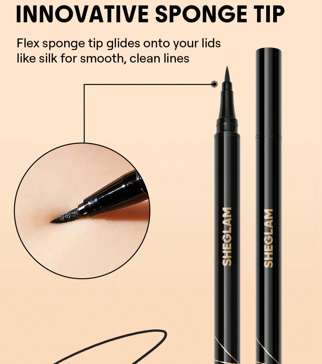 Dank seiner flexiblen, schwammartigen Spitze passt er sich jeder natürlichen Krümmung des Auges an und bietet bei jedem Strich absolute Kontrolle.