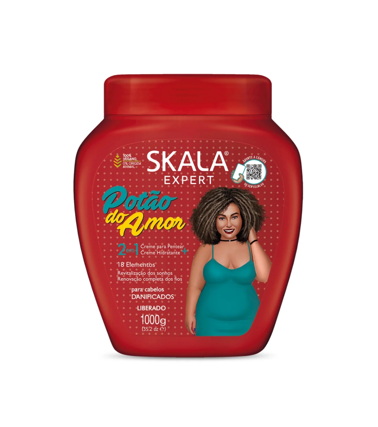Diese Pflegecreme Potão do Amor 1kg von Skala wurde entwickelt, um angesammelte Schäden zu bekämpfen, die Haarfaser zu stärken und dem Haar Glanz und Vitalität zurückzugeben.