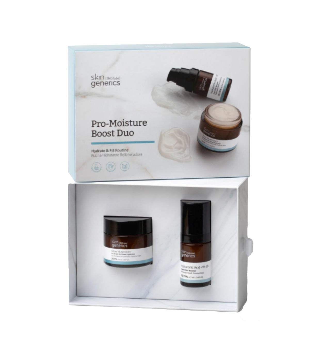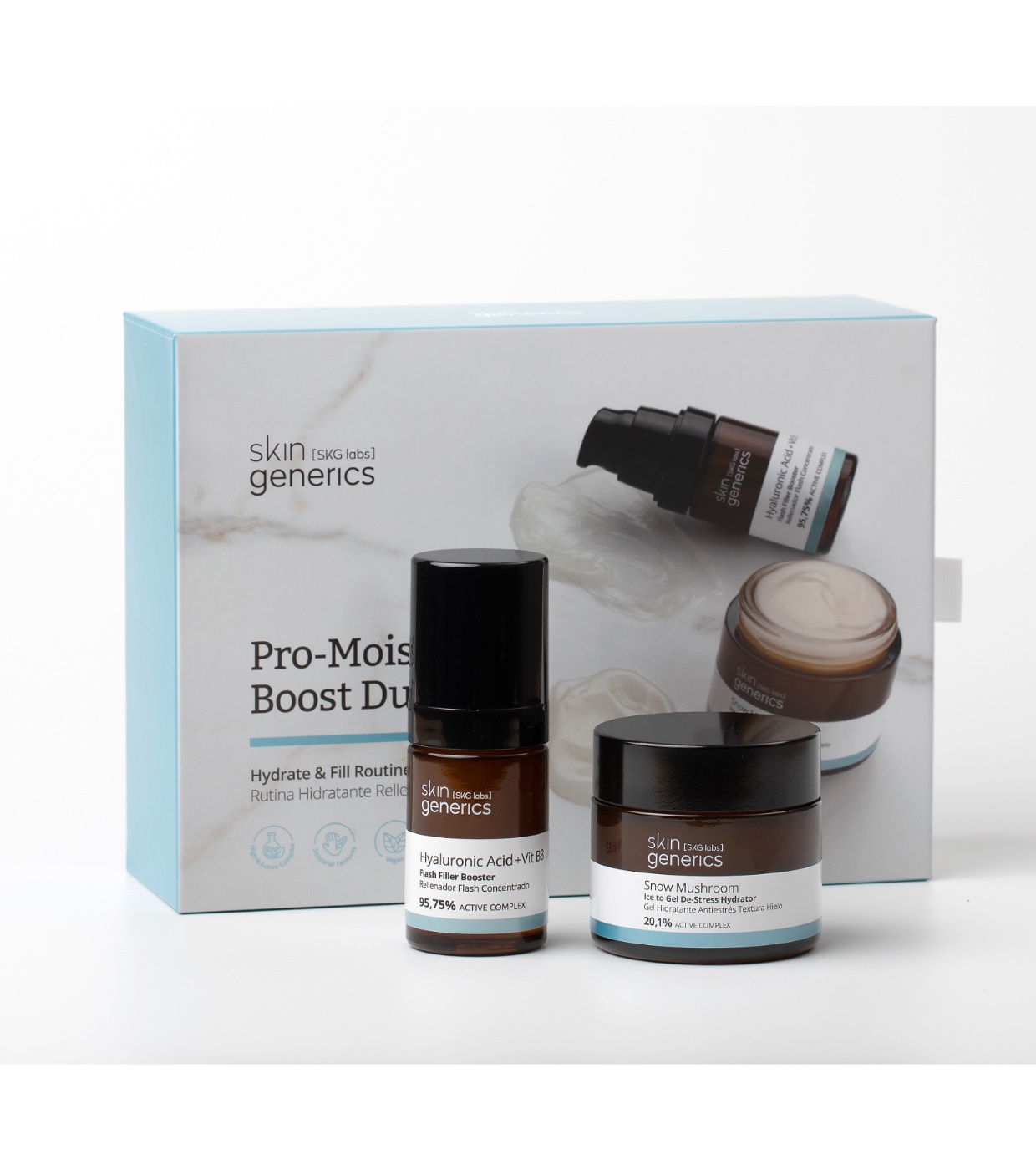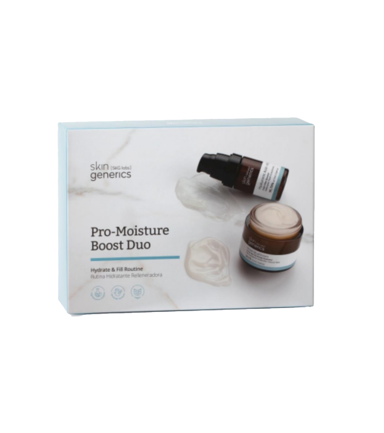 Entdecken Sie das Skin Generics Pro-Moisture Boost Duo , das Paket, das zwei Produkte der Marke kombiniert, um eine intensiv hydratisierte, weiche und strahlende Haut zu erzielen.