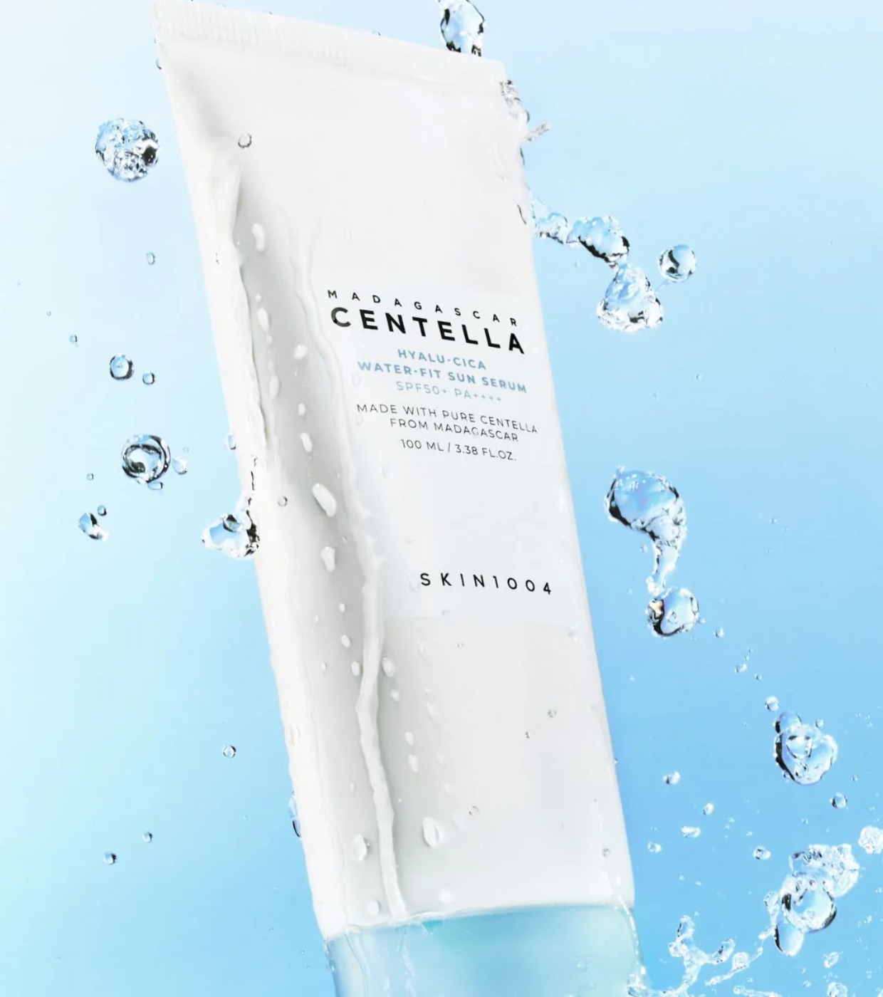 Dieses Sonnenschutzserum für das Gesicht Water-Fit SPF50+ PA++++ von SKIN1004 ist so formuliert, dass es intensive Feuchtigkeit spendet und gleichzeitig vor UV-Strahlen schützt.