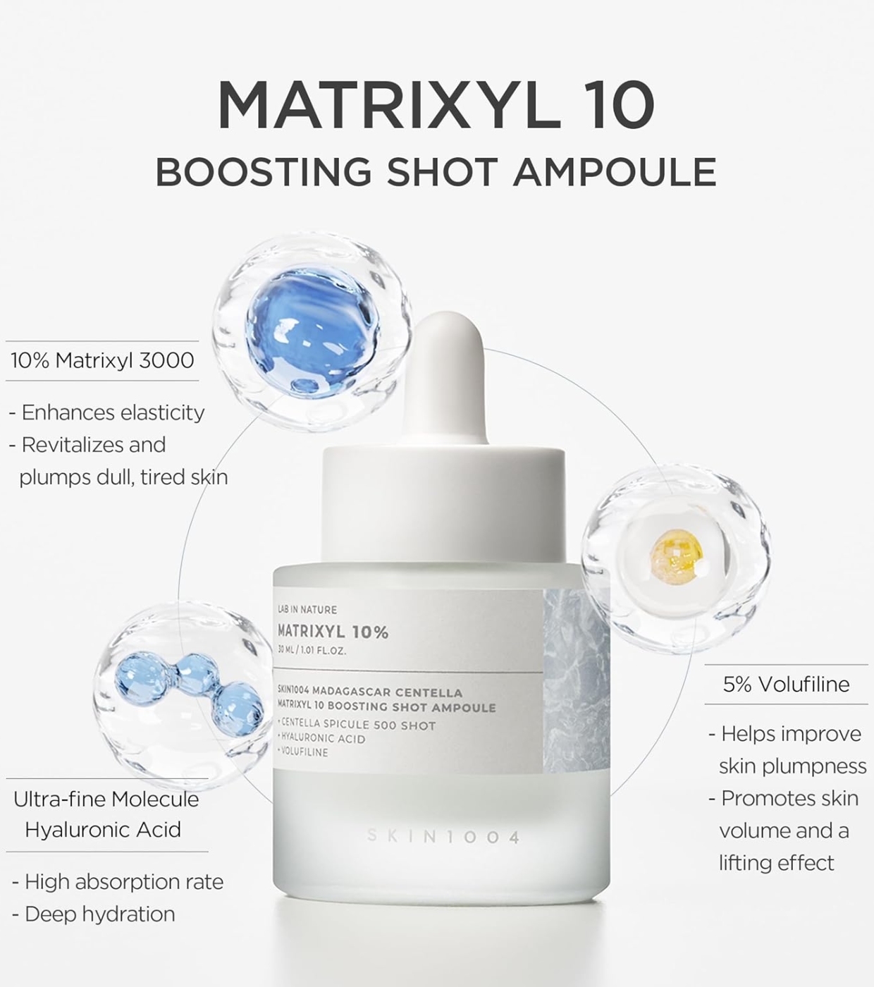 Verleihen Sie Ihrer fahlen Haut mit der Lab in Nature Madagascar Centella Matrixyl 10 Ampulle von SKIN1004 wieder ihre Vitalität.