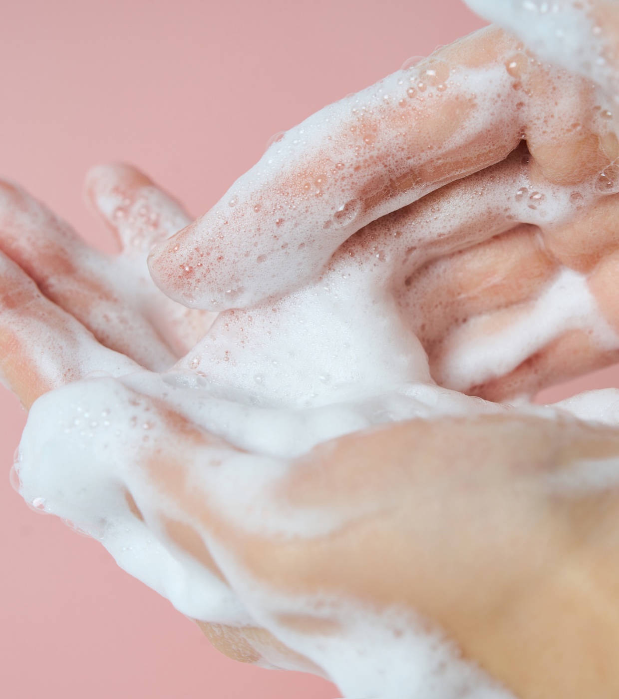 Eine angemessene Menge auf die nassen Hände auftragen und verreiben, bis ein reichhaltiger Schaum entsteht.