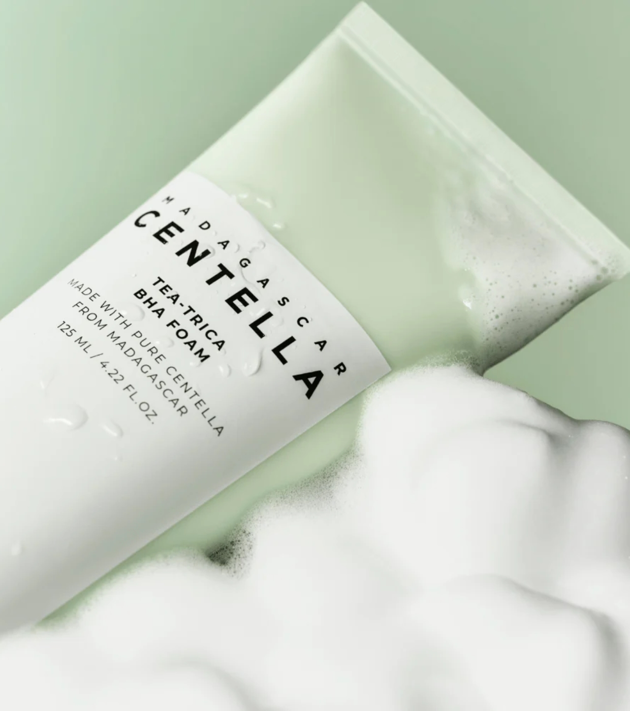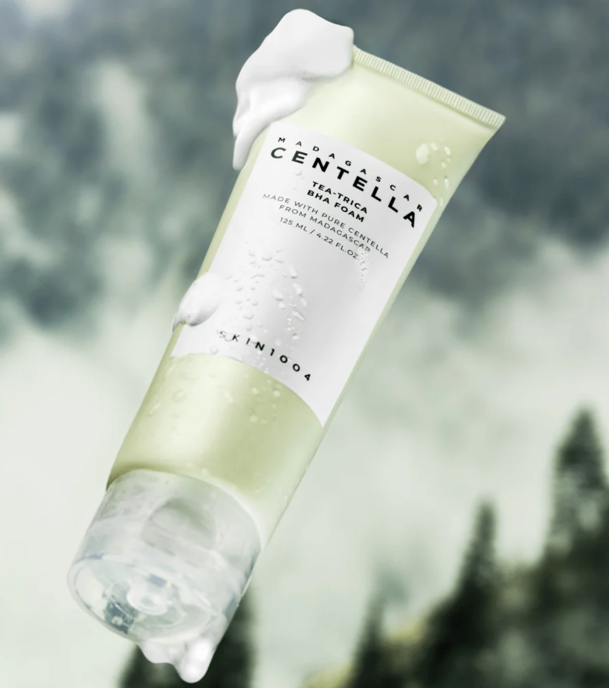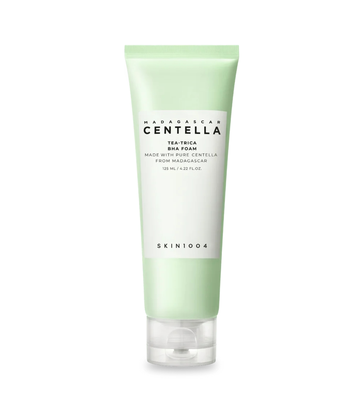 Entdecken Sie diesen Reinigungsschaum mit Centella Asiatica de Madagascar von SKIN1004 mit BHA und Teebaum, der die Poren frei macht und abgestorbene Hautzellen sanft ablöst.