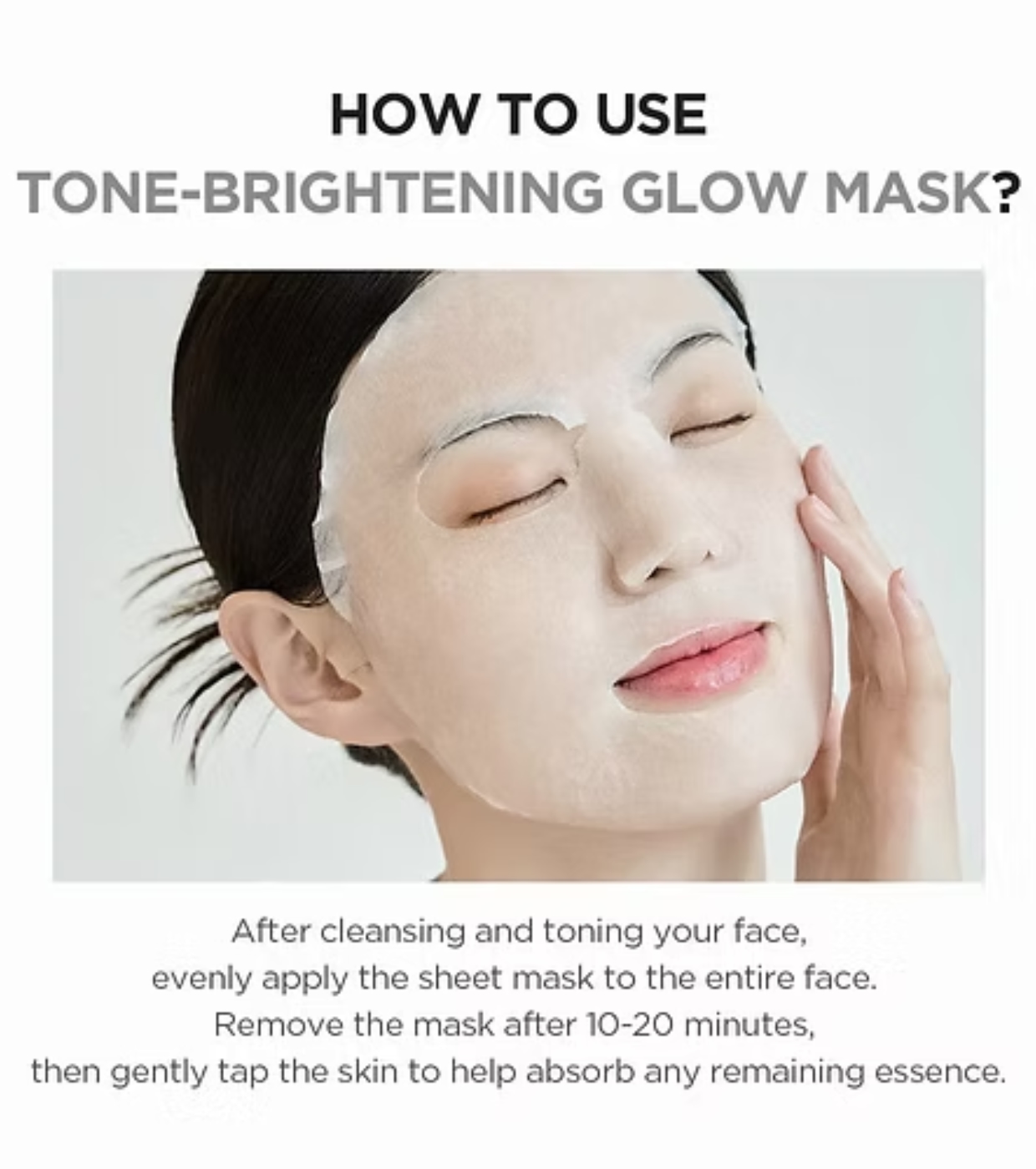 Entfernen Sie die Maske und massieren Sie die restliche Essenz sanft ein, um die Aufnahme aller auf der Haut verbleibenden Wirkstoffe zu erleichtern.