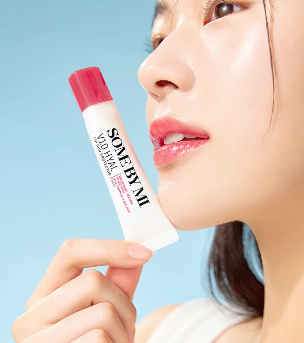 Schützen und pflegen Sie Ihre Lippen mit dem innovativen Lippensonnenschutz V10 Hyal von Some by mi , der Sonnenschäden blockiert und gleichzeitig Feuchtigkeit spendet und die Lippen weich macht.