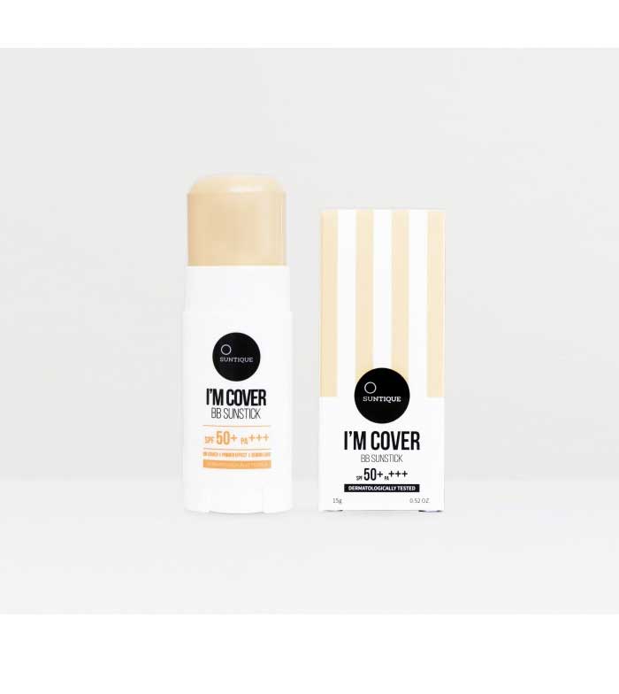 Getöntes Sonnenschutzmittel I’m Cover BB Sunstick mit Suntique SPF 50+.