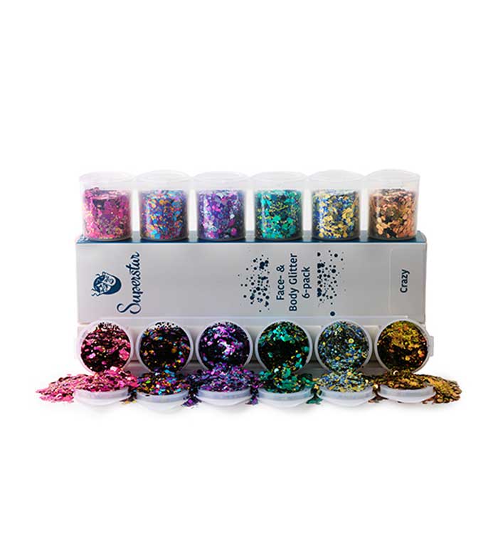 Packung mit 6 Glitzertönen für Gesicht und Körper Chunky Mix von Superstar.