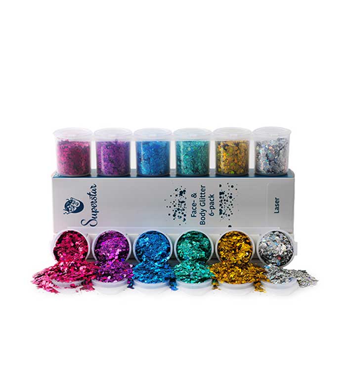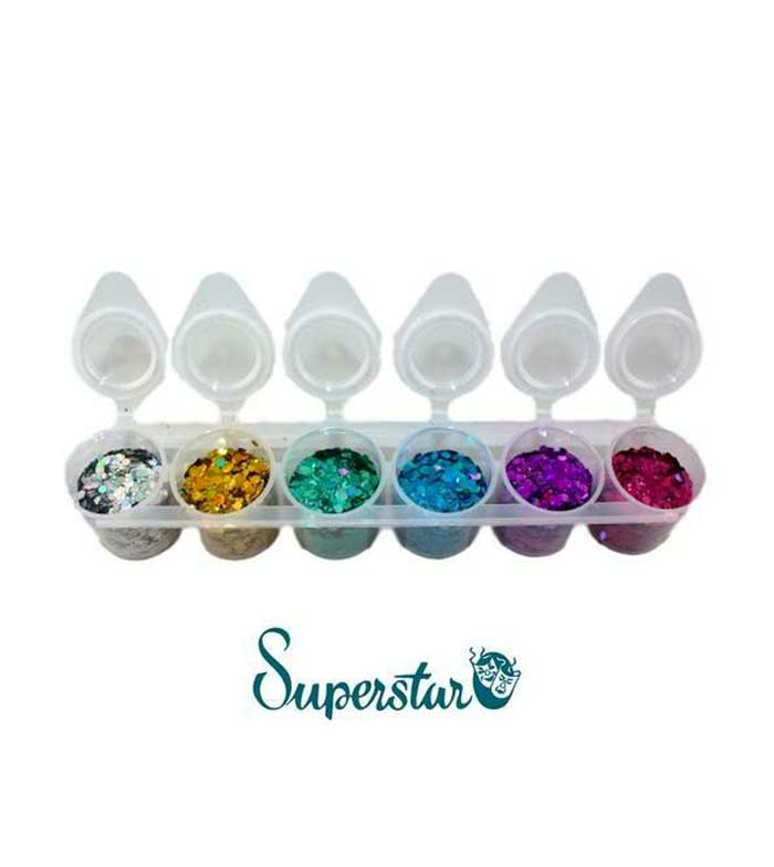 Packung mit 6 Glitzertönen für Gesicht und Körper Chunky Mix von Superstar.