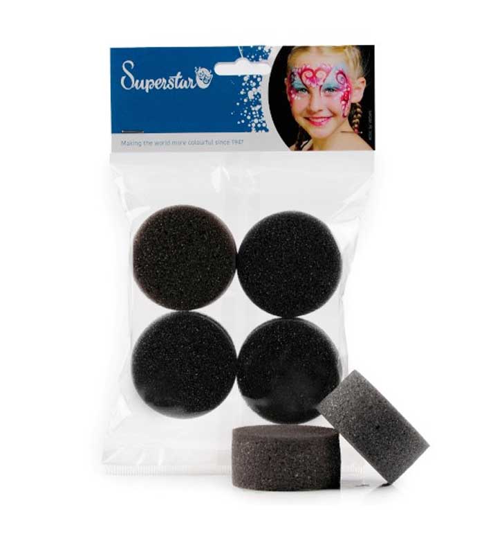 Packung mit 4 runden Schwämmchen , perfekt zum Auftragen von Aquacolors .