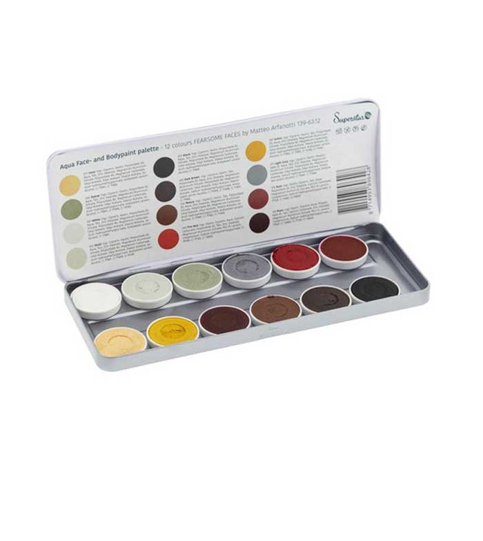 Palette mit 12 Aquacolors für Gesicht und Körper Fearsome Faces by Matteo Arfanotti
