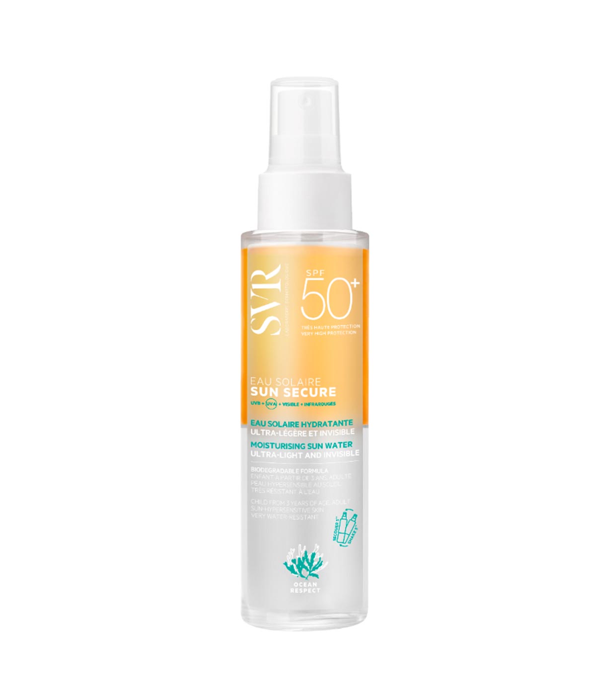 SVR Sun Secure ultraleichtes und unsichtbares feuchtigkeitsspendendes Sonnenschutzwasser mit Lichtschutzfaktor 50+.