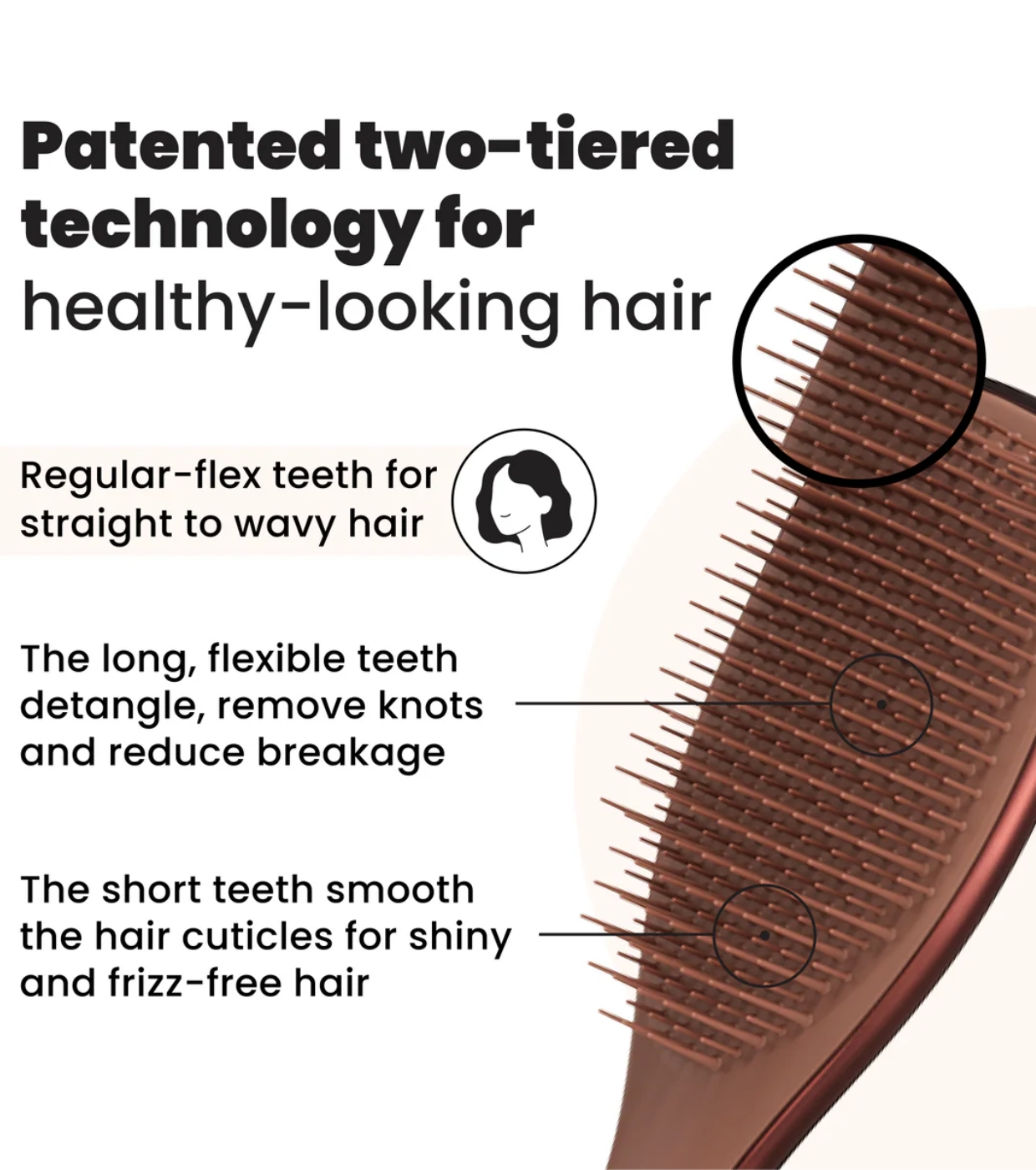 Mit seinen 325 flexiblen, zweistufigen Borsten entwirrt es sanft nasses oder trockenes Haar, minimiert Haarbruch und reduziert Frizz.