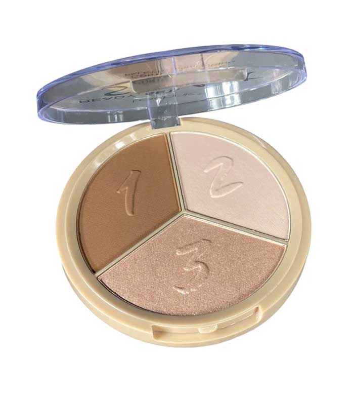 Diese Palette enthält 3 Farbtöne, um das Gesicht zu definieren und Lichter und Schatten zu erzeugen, um Gesichtszüge zu verbergen oder hervorzuheben.