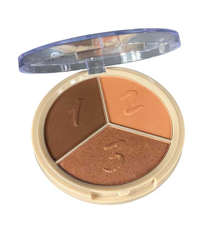 Diese Palette enthält 3 Farbtöne, um das Gesicht zu definieren und Lichter und Schatten zu erzeugen, um Gesichtszüge zu verbergen oder hervorzuheben.