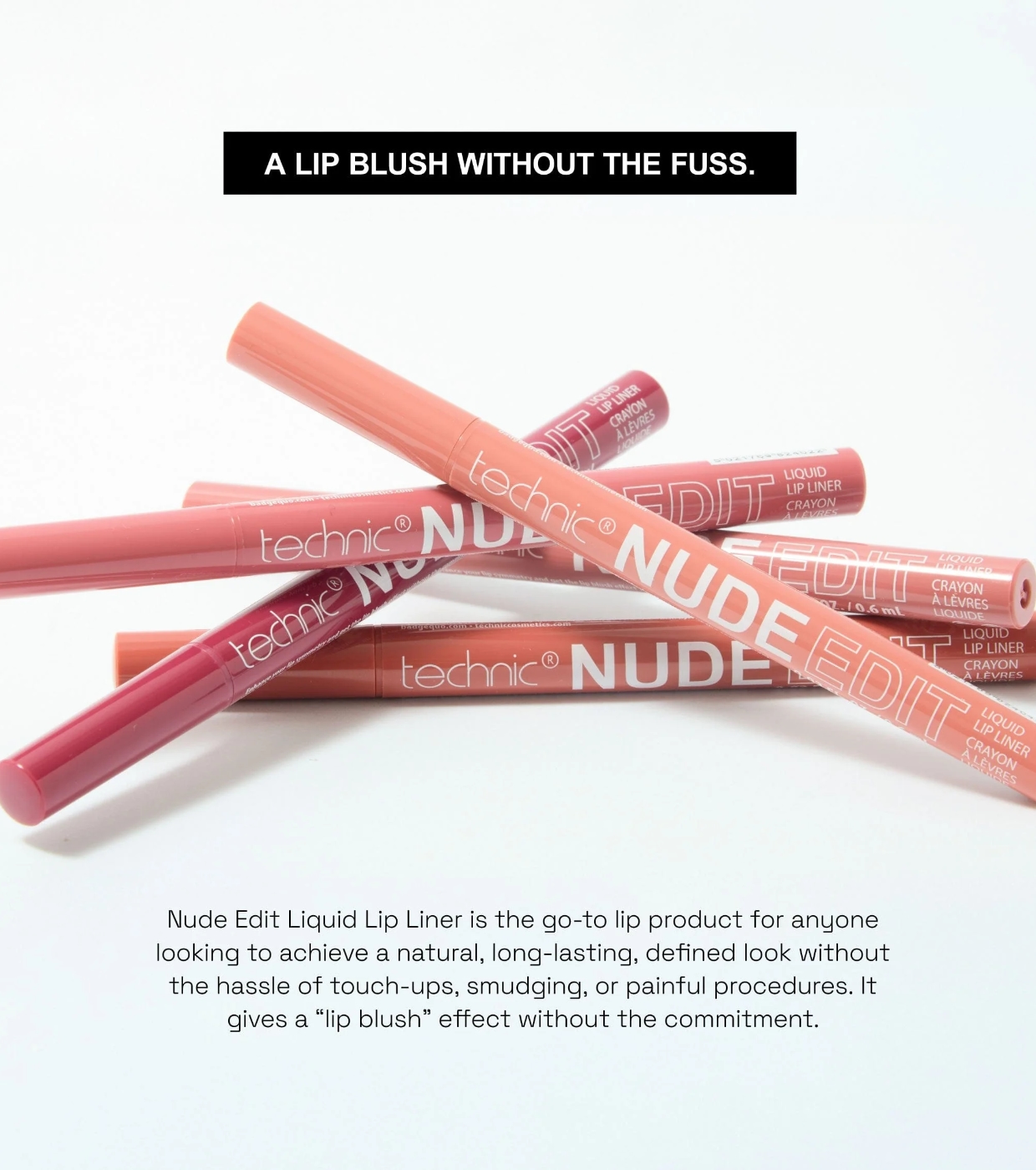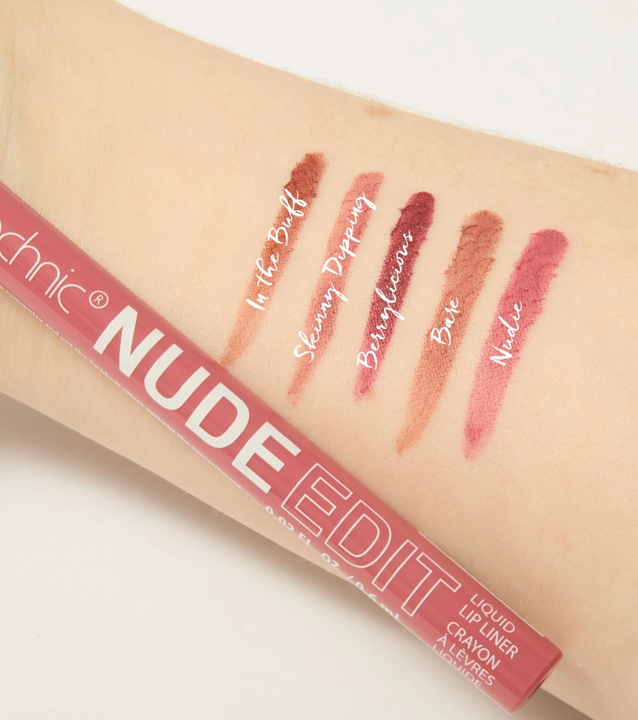 Verwenden Sie den hochpigmentierten, wasserfesten Flüssiglippenstift Nude Edit von Technic Cosmetics, um Ihren Lippen einen Hauch von Farbe und Definition zu verleihen.
