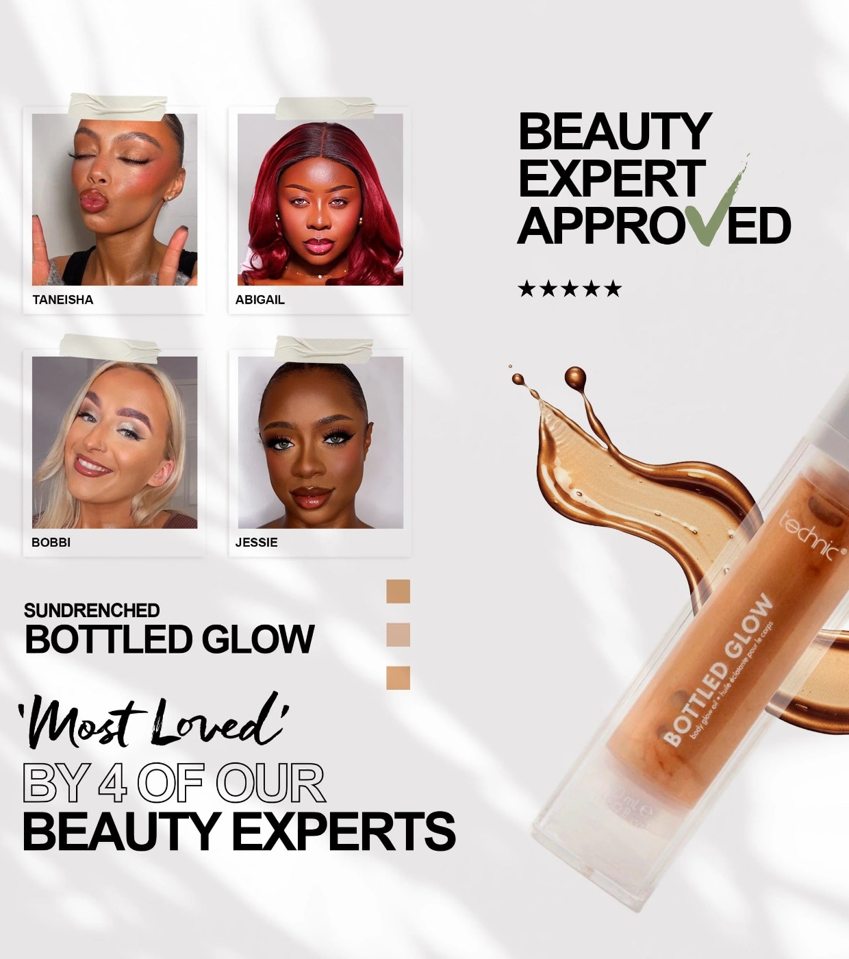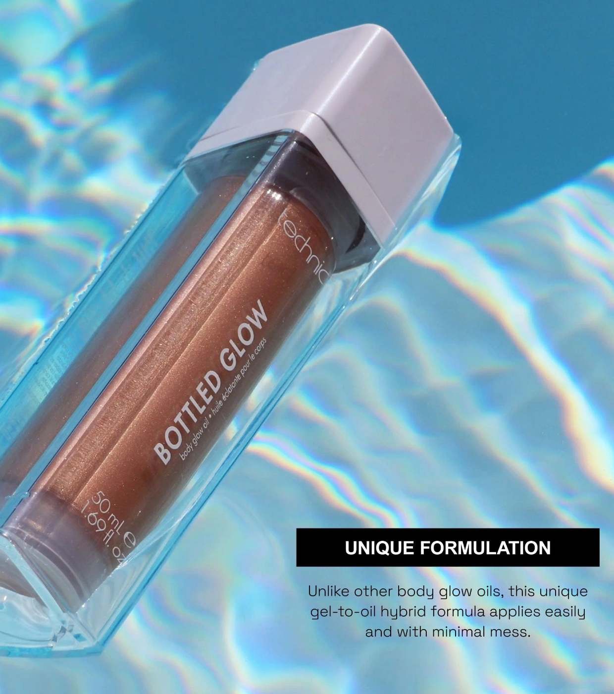 Holen Sie sich das ganze Jahr über strahlende Haut mit Glow-Effekt dank dieses leuchtenden Körperöls Bottled Glow von Technic Cosmetics mit glänzendem Finish und leichter Textur.