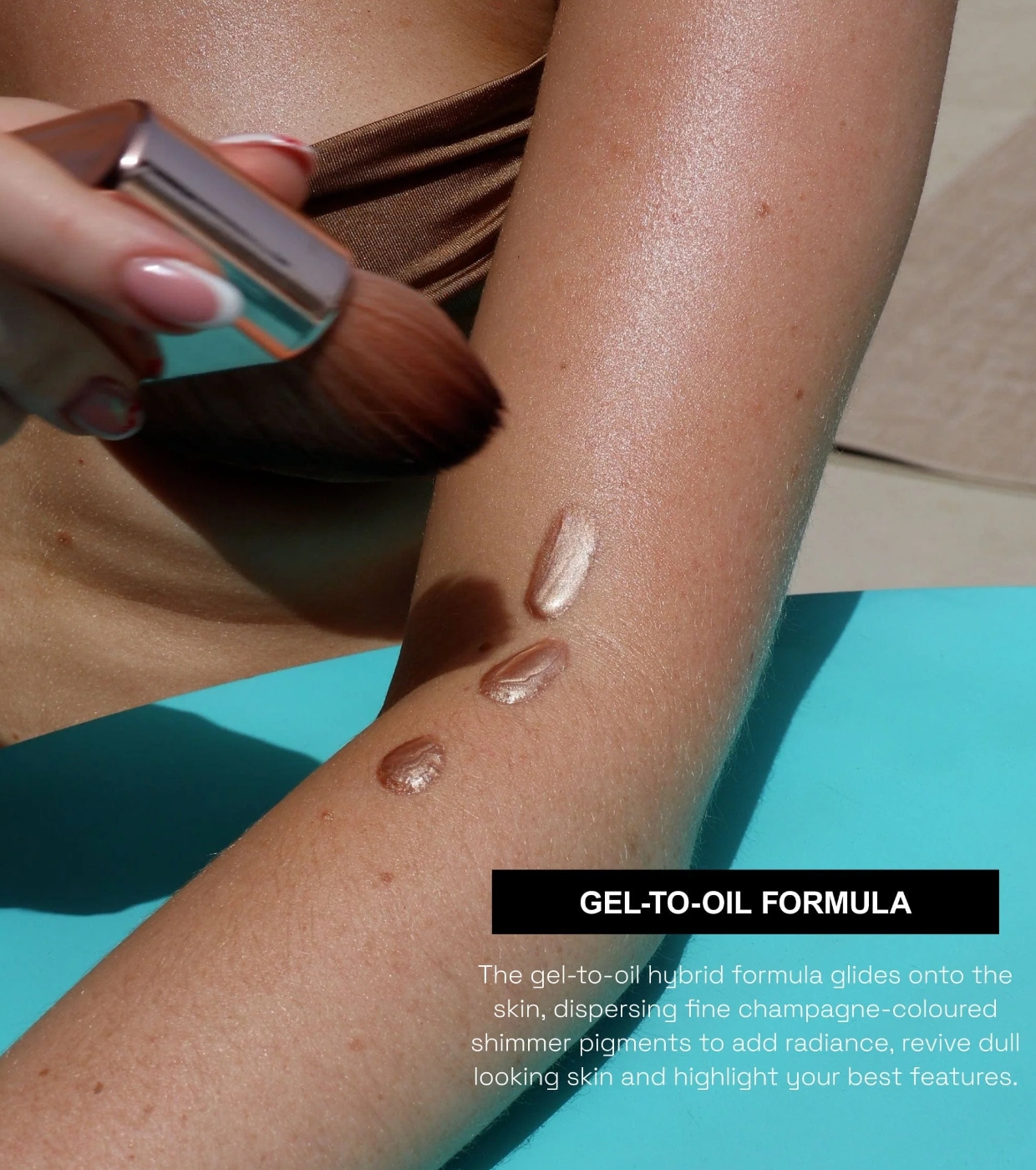 Seine einzigartige Gel-Öl-Hybridformel gleitet sanft über die Haut und hinterlässt einen sonnengeküssten, goldenen Schimmer, der Ihre Kurven betont und Ihnen sofort ein gesundes, strahlendes Aussehen verleiht.