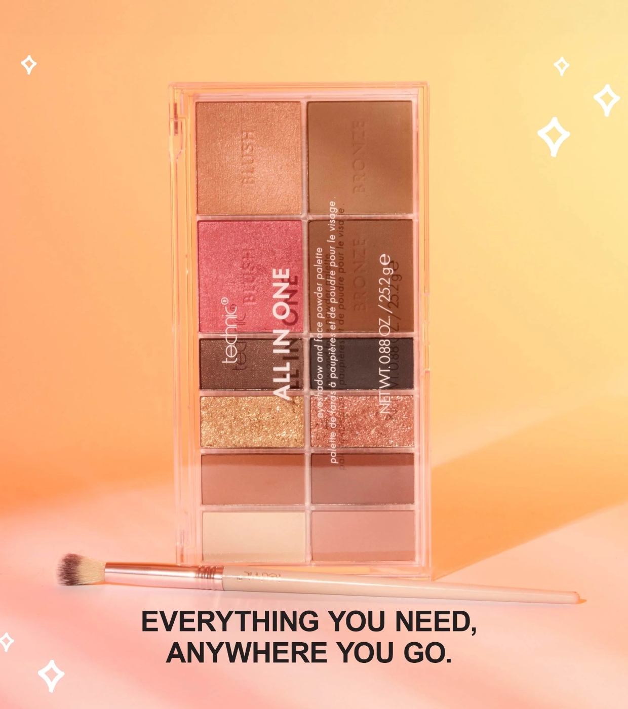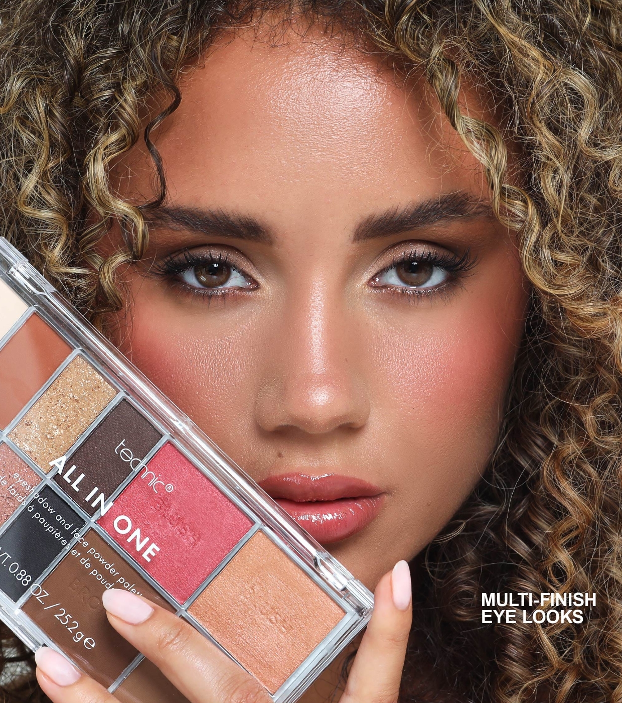 Diese praktische All-in-One-Palette umfasst eine kuratierte Auswahl pigmentierter Lidschatten und leuchtender Rouges für jeden Hautton.