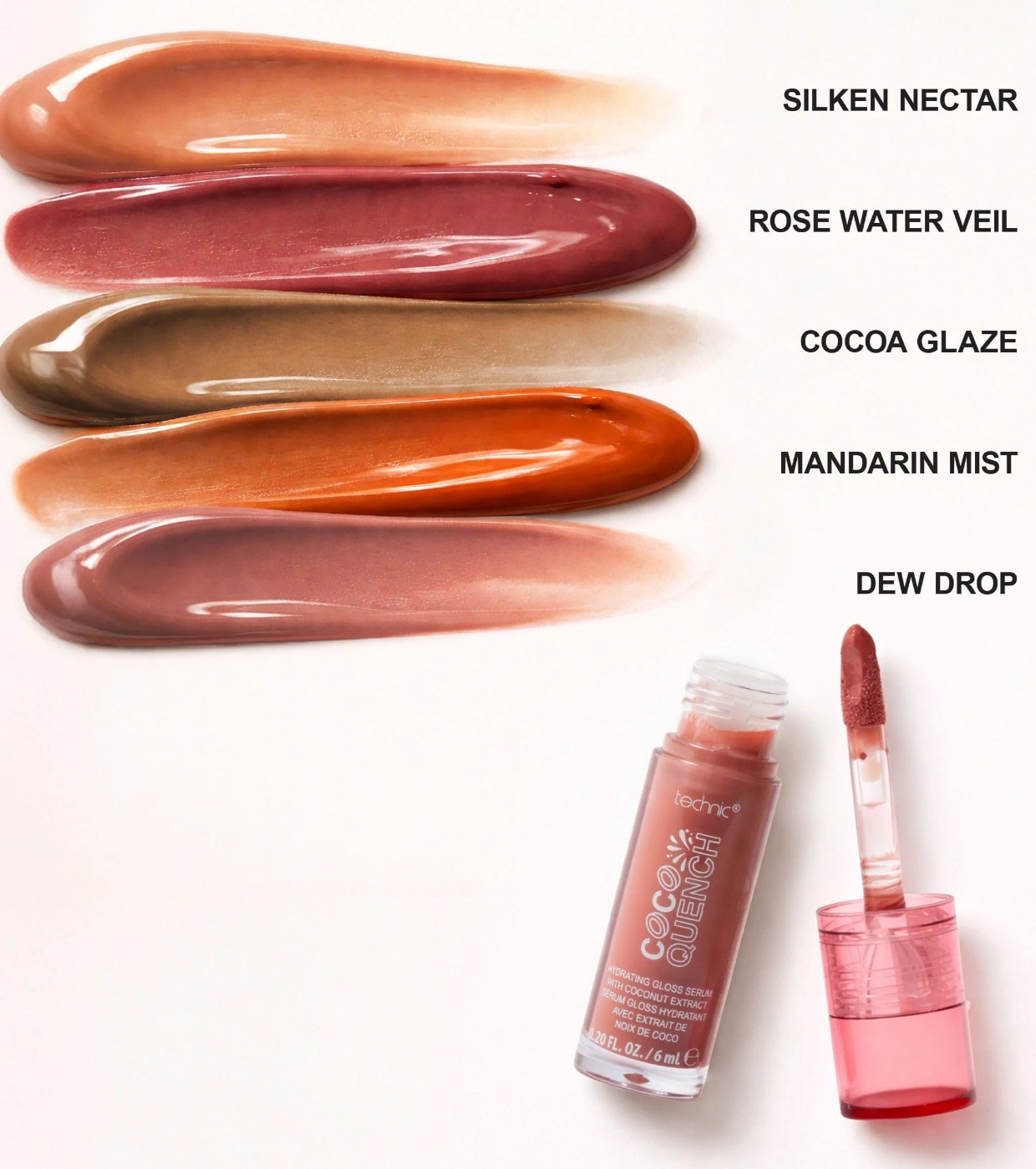 Dieser feuchtigkeitsspendende Lipgloss Coco Quench von Technic Cosmetics , angereichert mit Kakaobutter, sorgt bereits beim ersten Auftragen für ein sattes, leuchtendes Farbergebnis.
