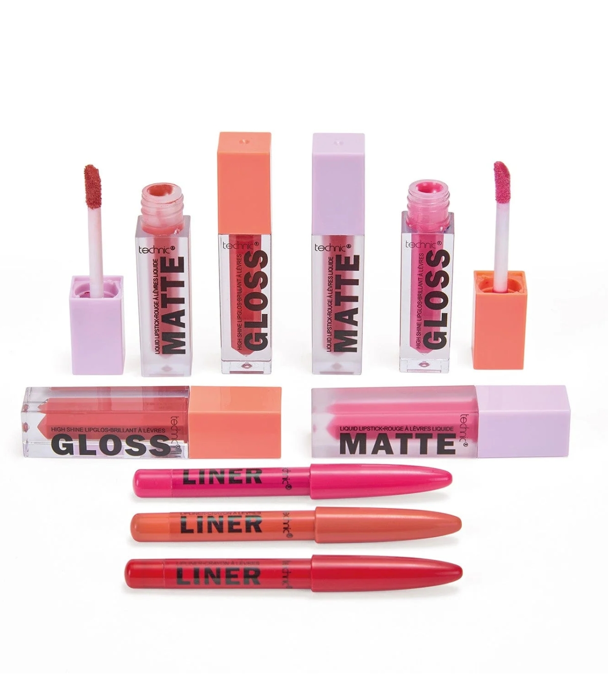 Die perfekte Kombination aus Farbe und Pflege für Ihre Lippen! Dieses exklusive 9-teilige Lip Vault Lip Vault Lipliner + Lippenstift-Set vereint alles, was Sie für vielseitige Looks benötigen, vom edlen Matt-Finish bis hin zu strahlendem, saftigem Glanz.