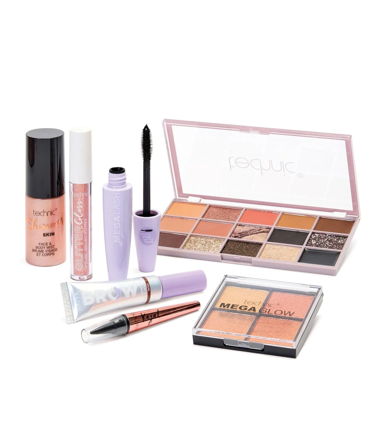 Das Set enthält außerdem ein getöntes Augenbrauengel, das für Definition sorgt, einen Kajalstift und Megalash-Mascara, die den Look perfekt unterstreicht und einrahmt.