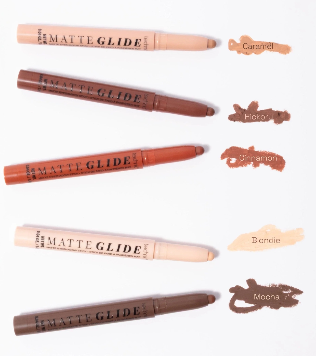 Erziele intensive, lang anhaltende matte Farbe mit diesem cremigen, hochpigmentierten Matte Glide Lidschattenstift von Technic Cosmetics .