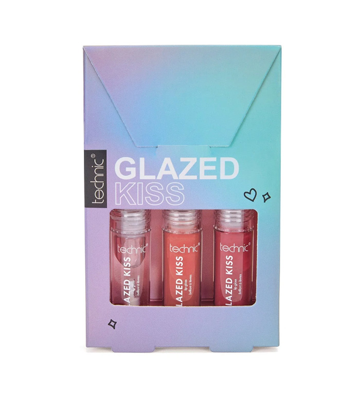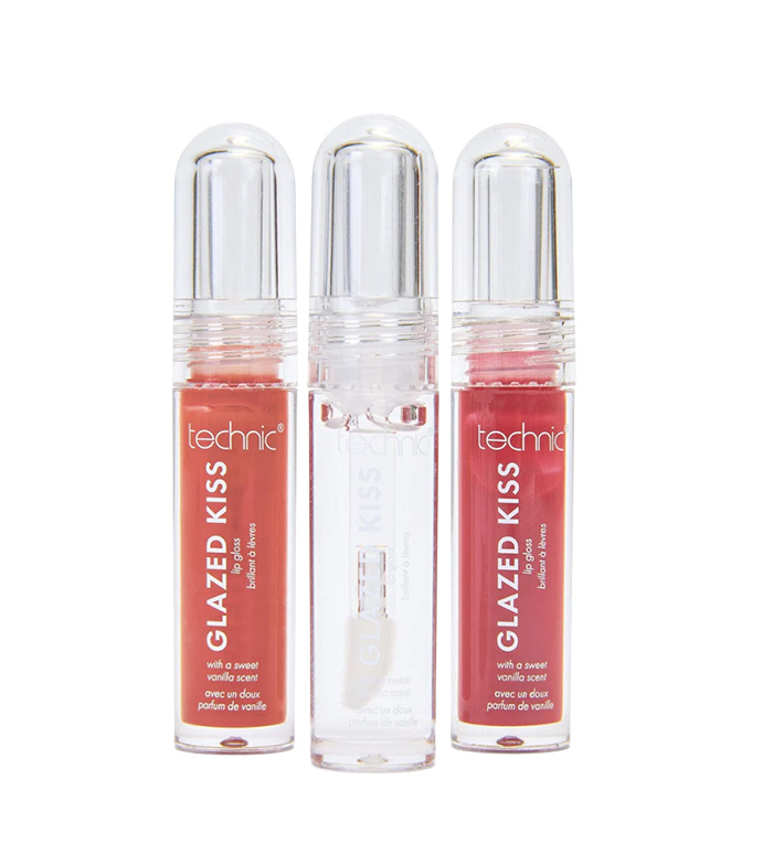 Erzielen Sie strahlende Lippen mit dem hochglänzenden, intensiv pigmentierten Lipgloss-Trio Glazed Kiss von Technic Cosmetics .