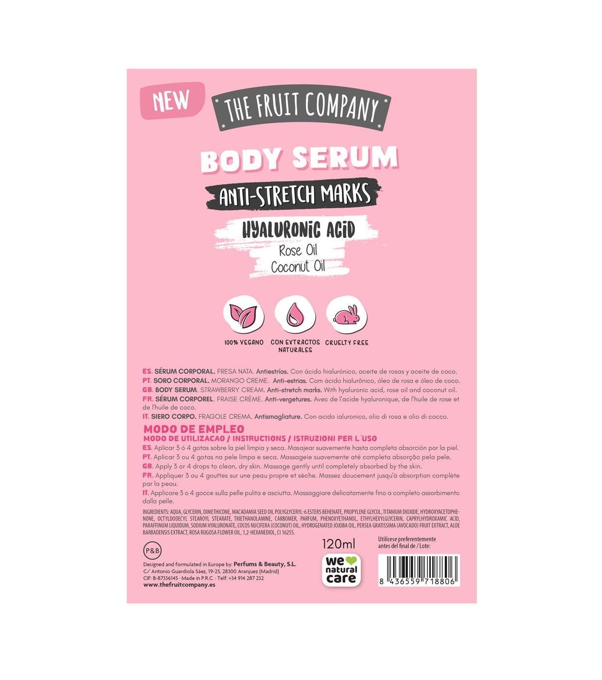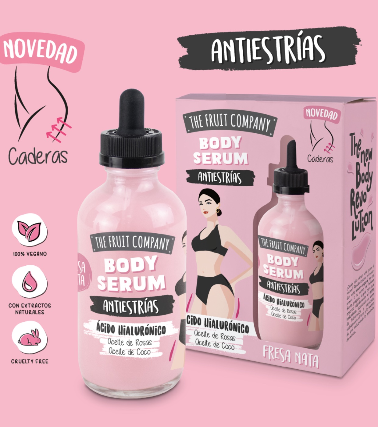 Spezielles Körperserum für Dehnungsstreifen mit Erdbeeren und Sahne von The Fruit Company.