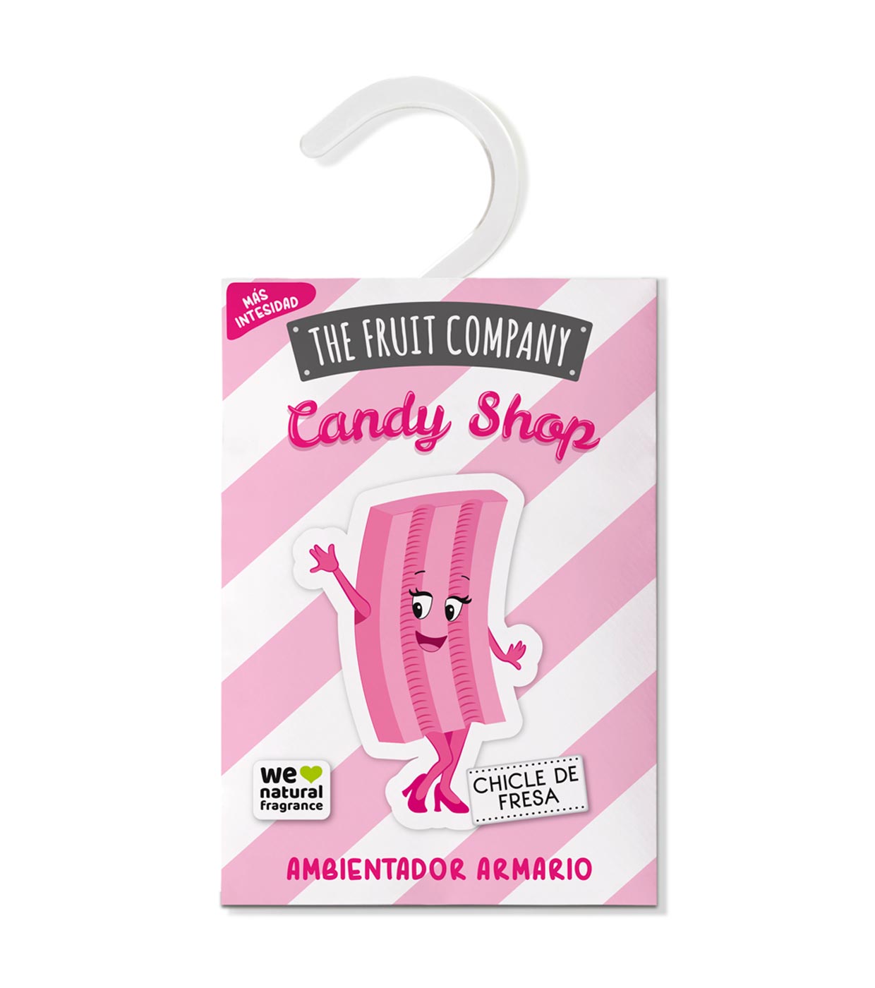 Machen Sie sich bereit für ein süßes Fest voller Düfte in Ihrem Kleiderschrank! Wir stellen den Lufterfrischer „Strawberry Gum Garderobe“ Candy Shop von The Fruit Company. vor.