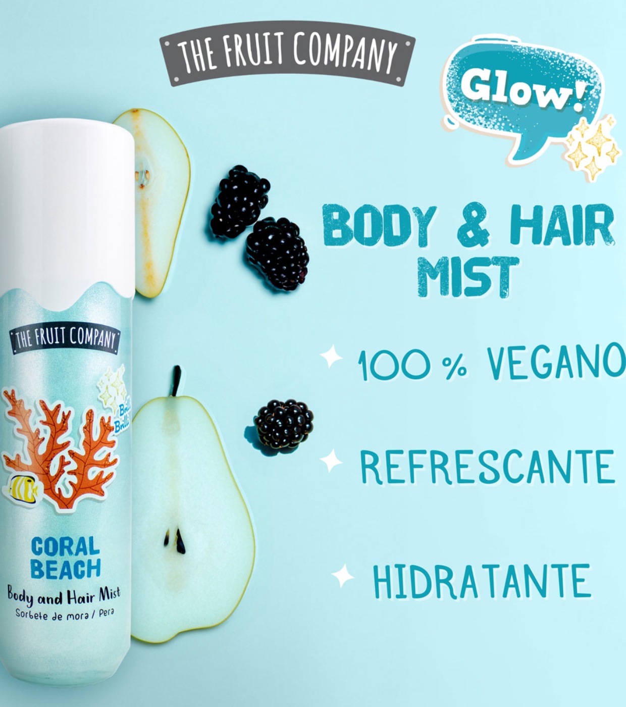 Entdecken Sie das neue Hair & Body Mist Coral Beach von The Fruit Company, eine unwiderstehliche Mischung aus Frische und Leuchtkraft für Ihre Haut.