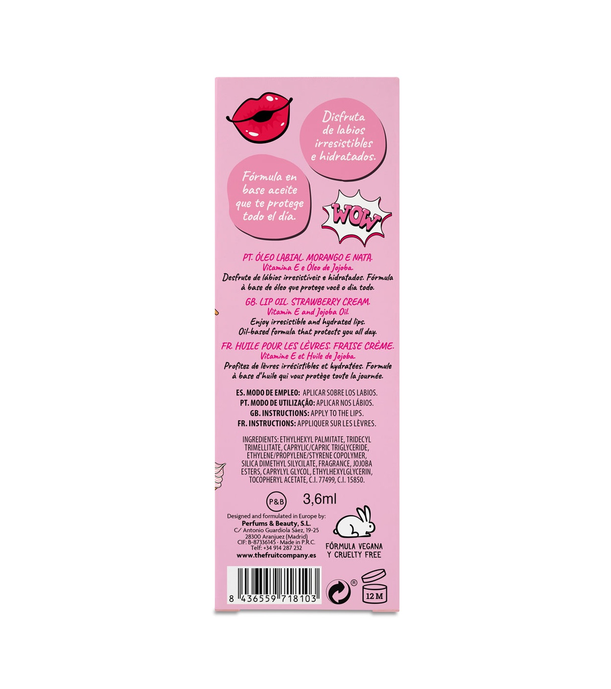 Entdecken Sie The Fruit Company Strawberry Cream Lip Oil, ein Must-Have für weiche, hydratisierte und köstlich duftende Lippen.
