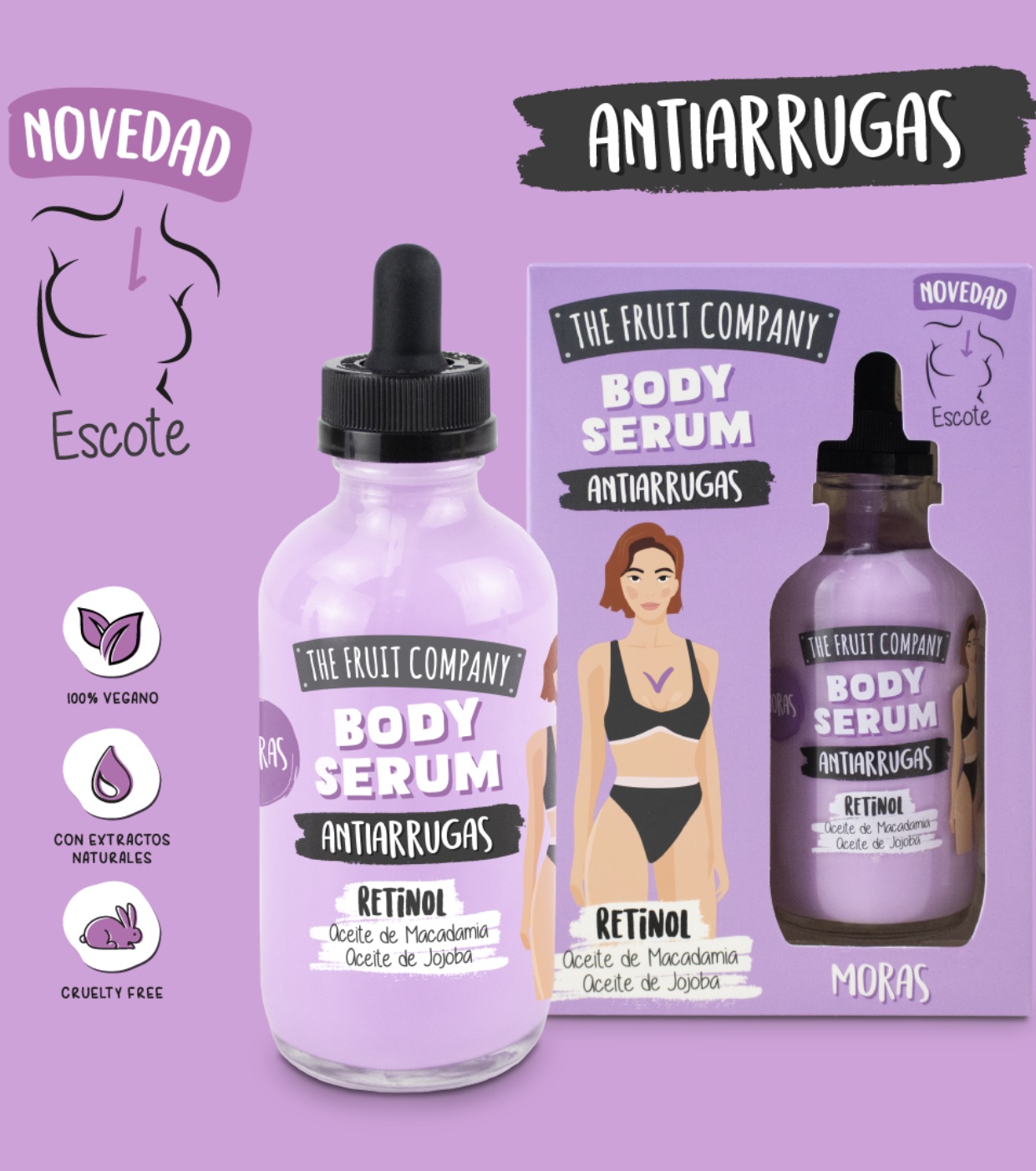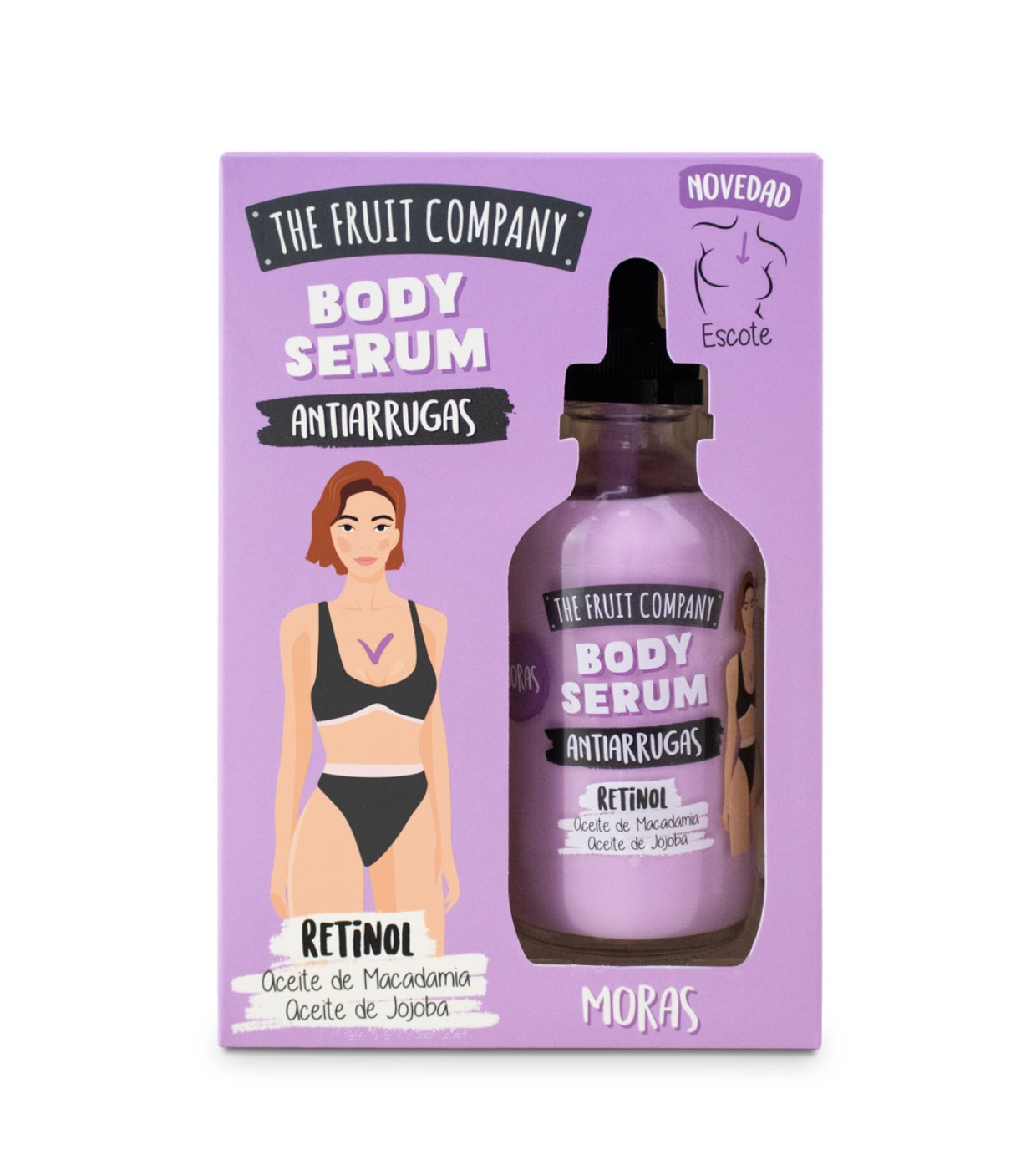 Spezielles Retinol-Körperserum für den Brombeer-Ausschnitt von The Fruit Company.
