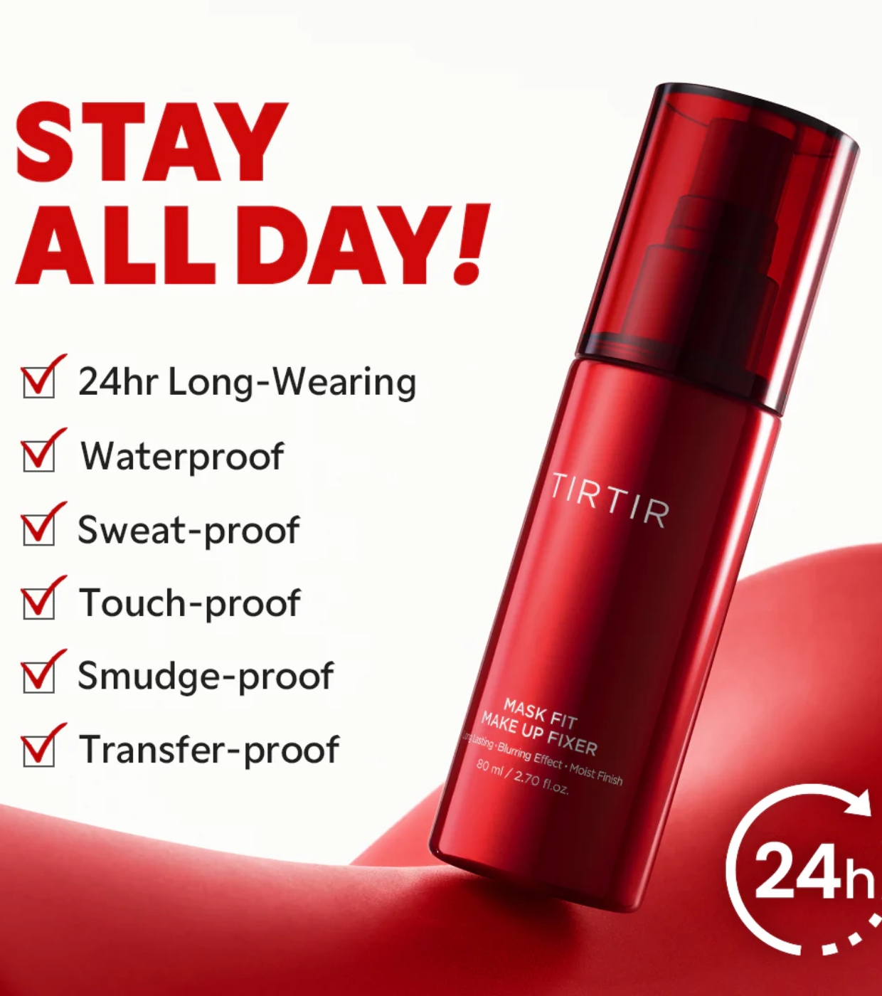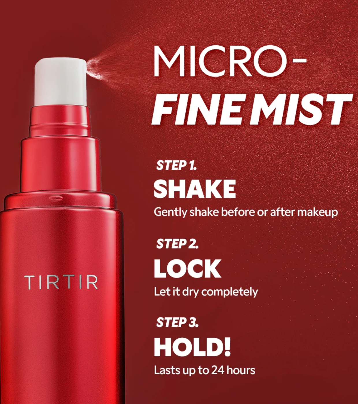 Mit diesem Fixierspray von TIRTIR bleibt Ihr Make-up stundenlang makellos. Es wurde entwickelt, um einen lang anhaltenden, starken und abriebfesten Halt zu bieten.