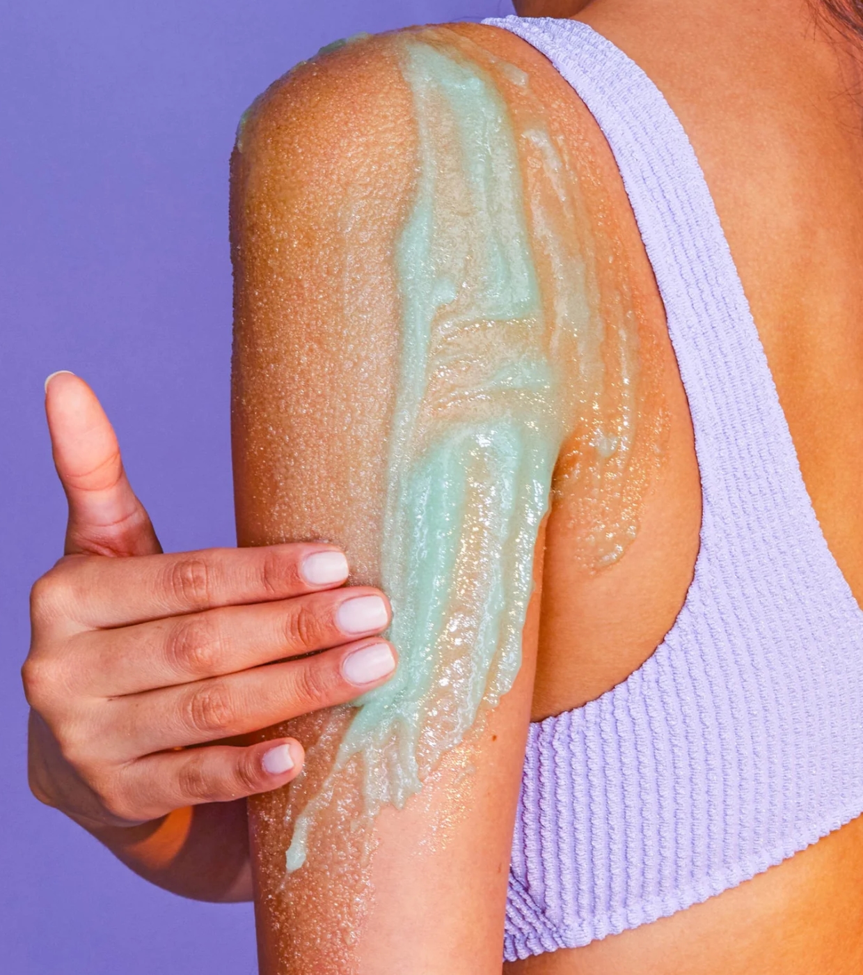 Die Formel, basierend auf Zucker, Sheabutter, Pistazienöl und Weidenrindenextrakt, entfernt sanft abgestorbene Hautzellen und pflegt die Haut intensiv, wodurch sie unglaublich weich, strahlend und erneuert wird.
