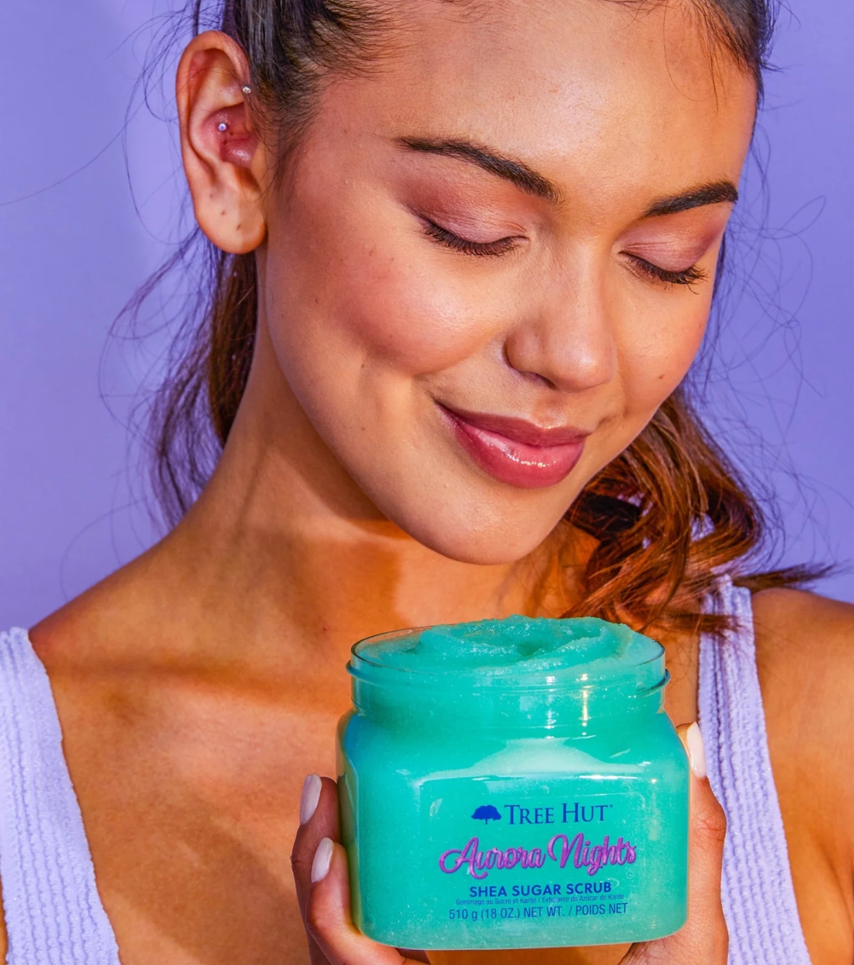 Bereichern Sie Ihre Duschroutine und verwandeln Sie Ihre Haut mit dem Aurora Nights Körperpeeling von Tree Hut .