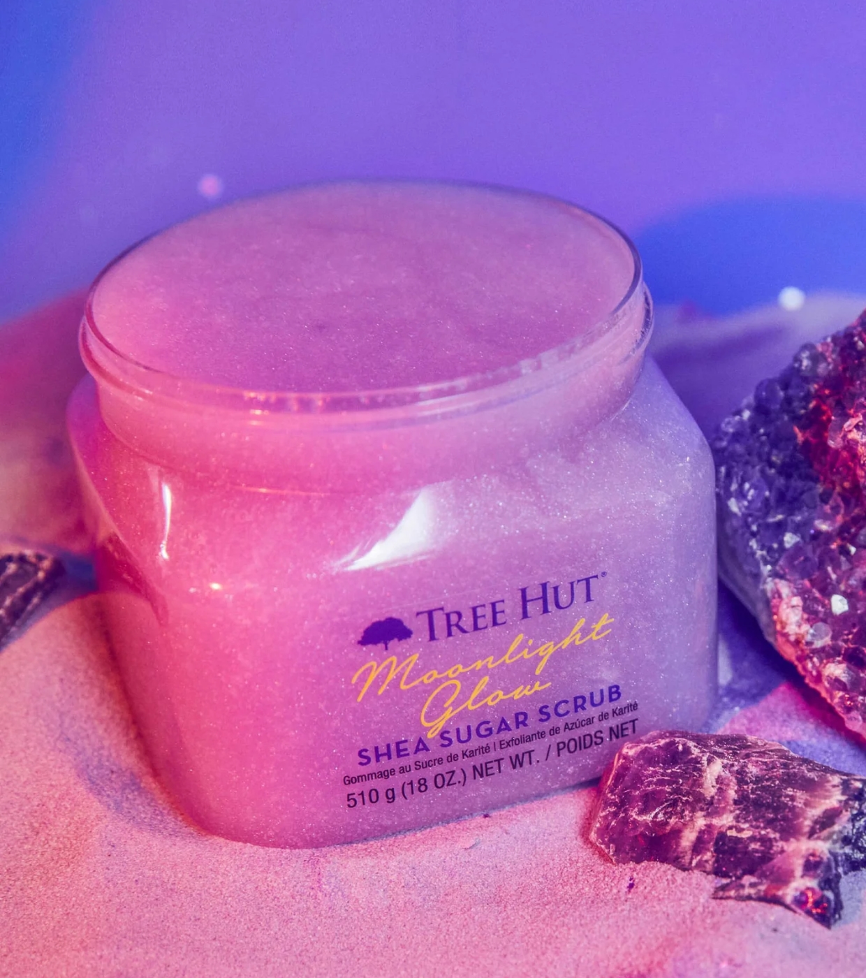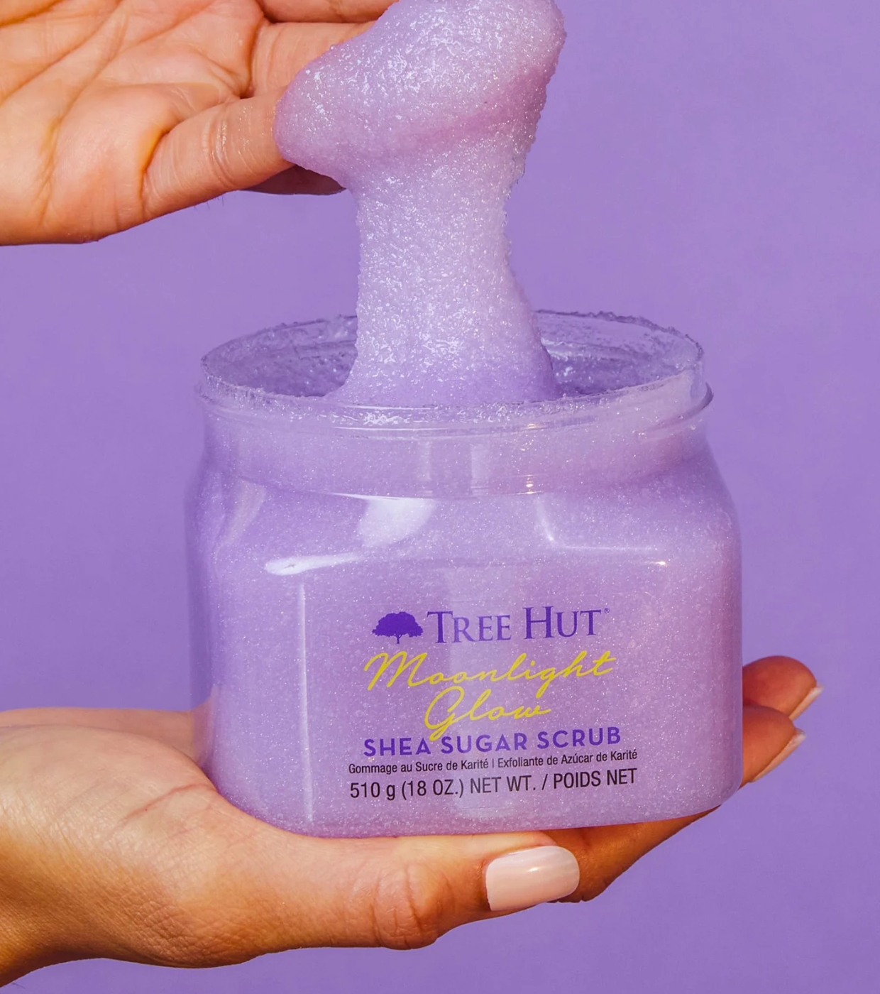 Dieses Shea Sugar Scrub Körperpeeling von Tree Hut ist mit Adaptogenen und Mineralien angereichert, die die Haut beruhigen und ein Wohlbefinden fördern.