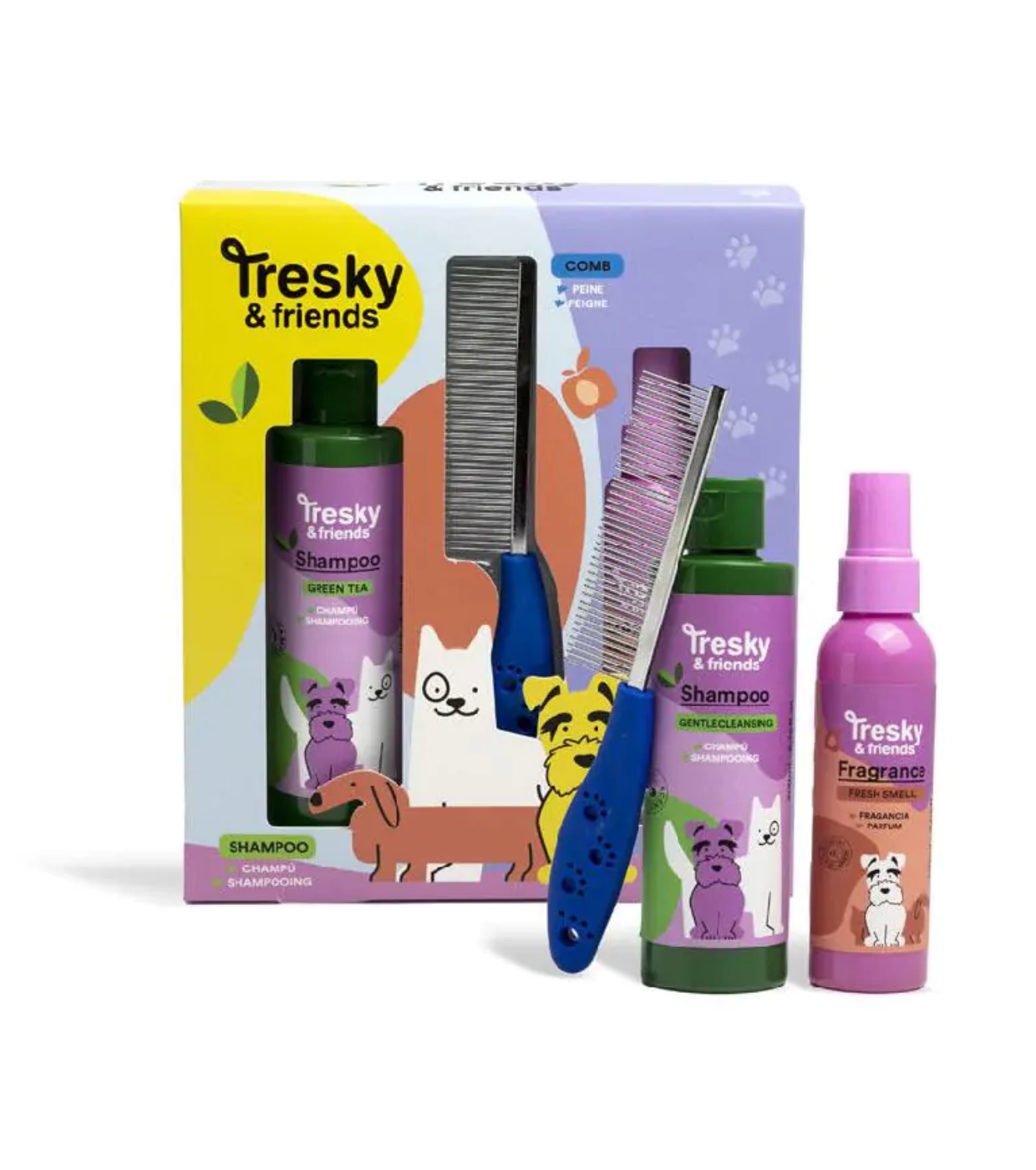 Das TRESKY & FRIENDS Haustierhygiene-Set enthält alles, was Sie benötigen, um Ihren Hund jeden Tag sauber, gepflegt und komfortabel zu halten.