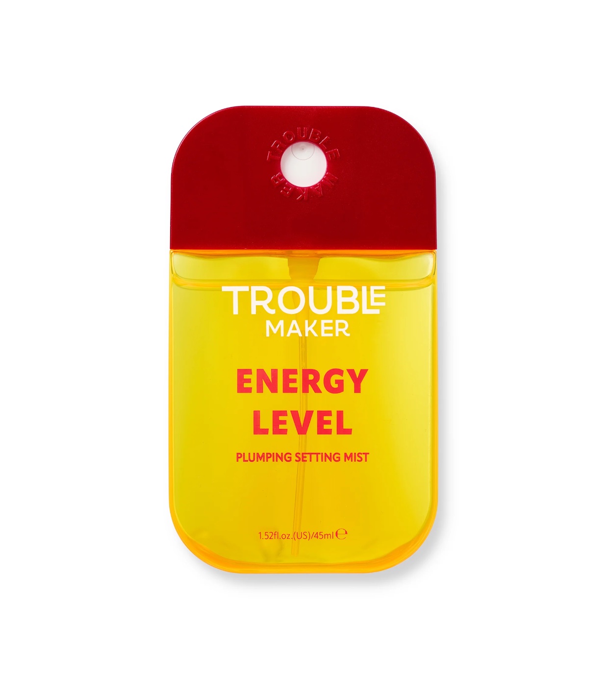 Trouble Maker Energy Level Plumping Setting Spray ist Ihr Verbündeter für ein frisches, taufrisches Make-up, das den ganzen Tag hält.