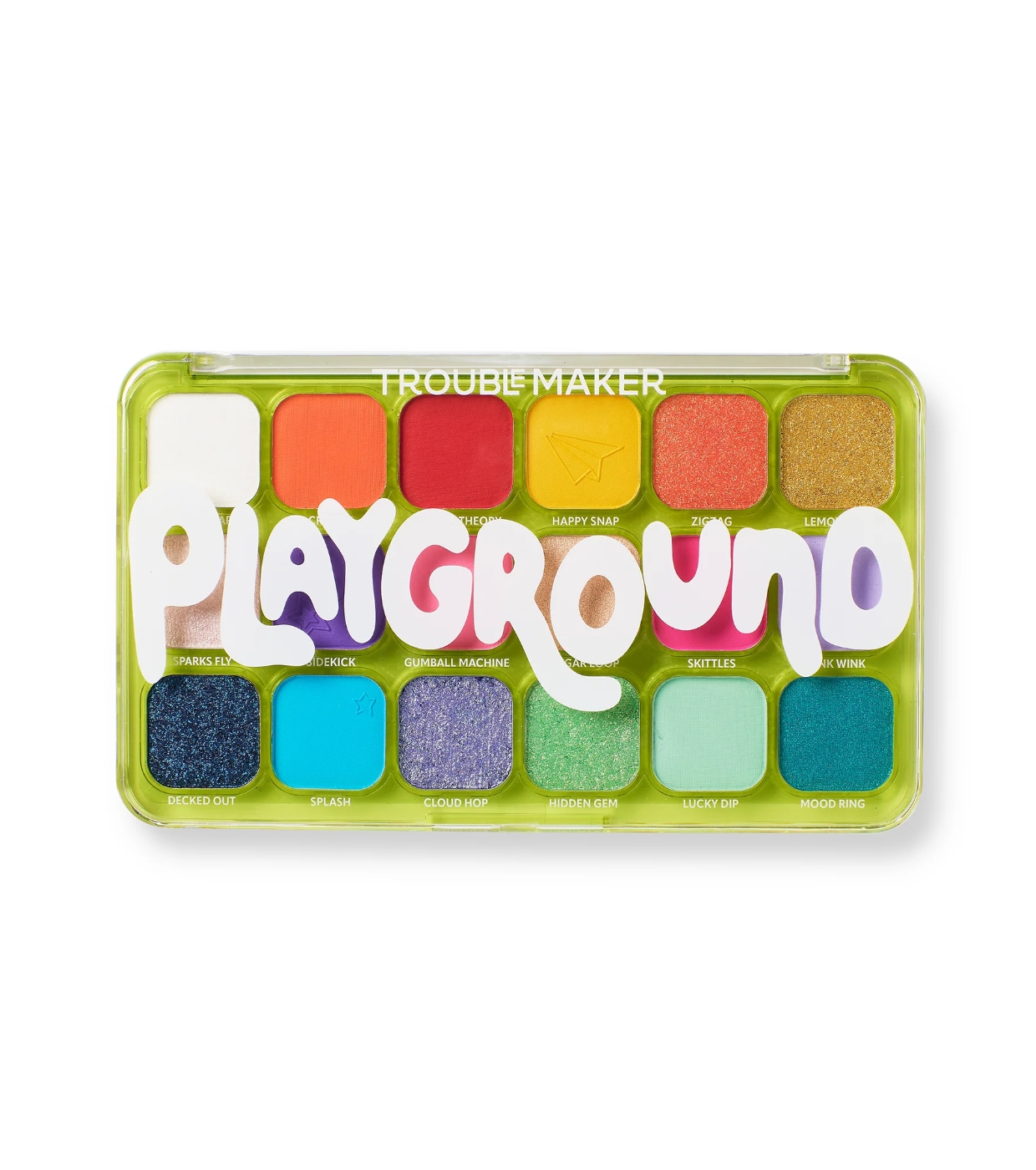 Die Lidschattenpalette Trouble Maker kombiniert fröhliche und lebendige Farbtöne, die perfekt für jeden Anlass sind.
