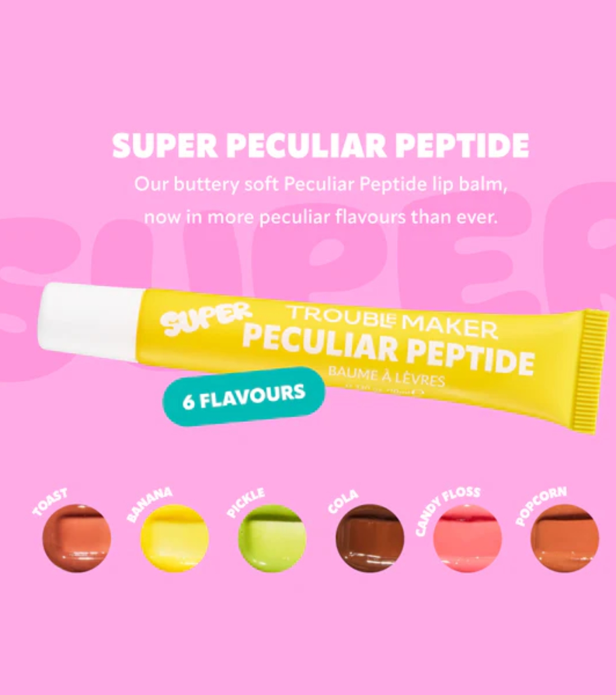 Entdecken Sie den Super Peculiar Peptide Lippenbalsam von Trouble Maker , den super seidigen Lippenbalsam, der Glanz und Pflege bietet, ohne ein klebriges Gefühl zu hinterlassen.