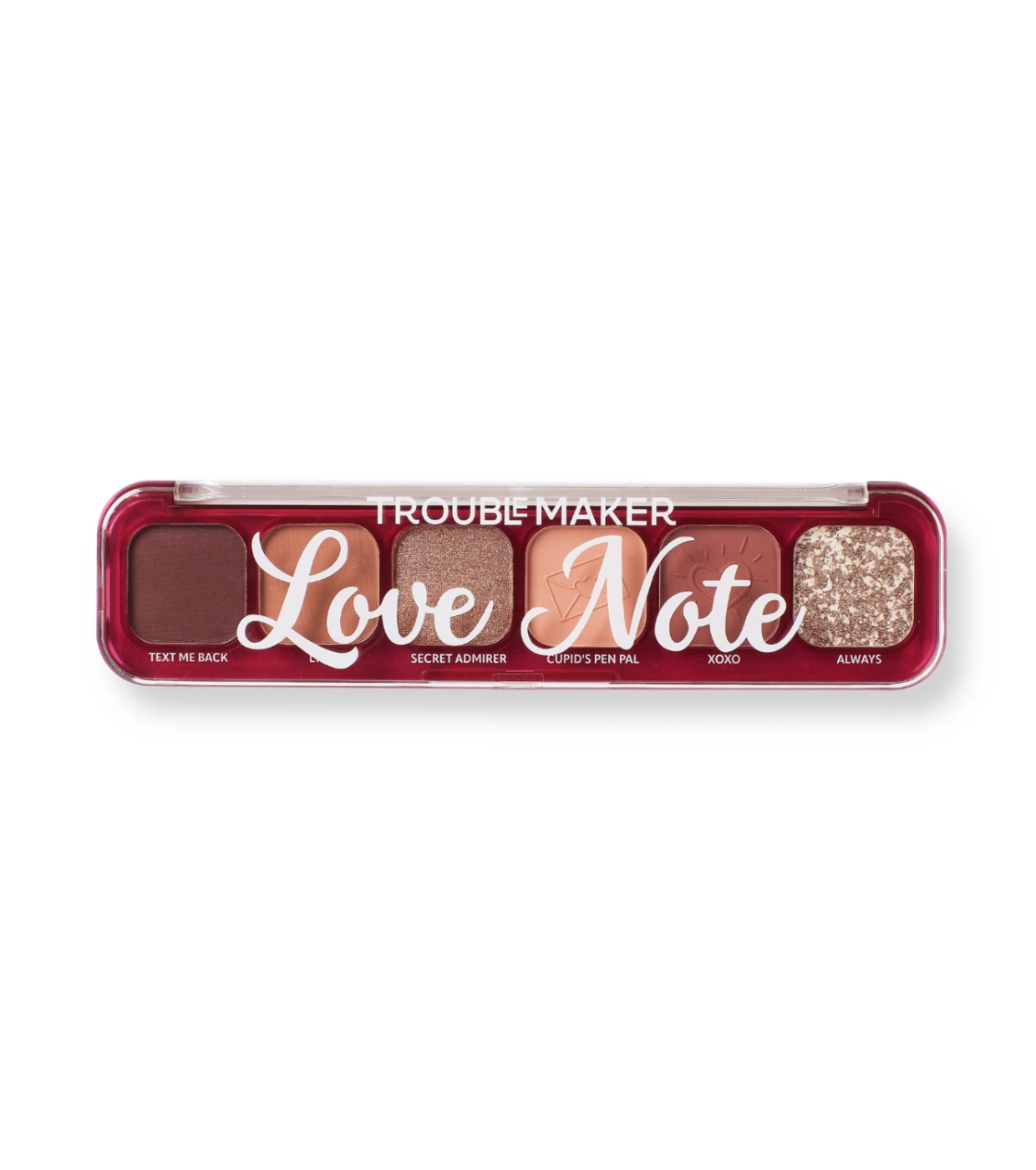 Die Lidschattenpalette Trouble Maker Trouble Maker bietet eine Kombination aus sechs unwiderstehlichen Farbtönen, von sanften Matttönen bis hin zu schimmernden Chrom-Finishes.