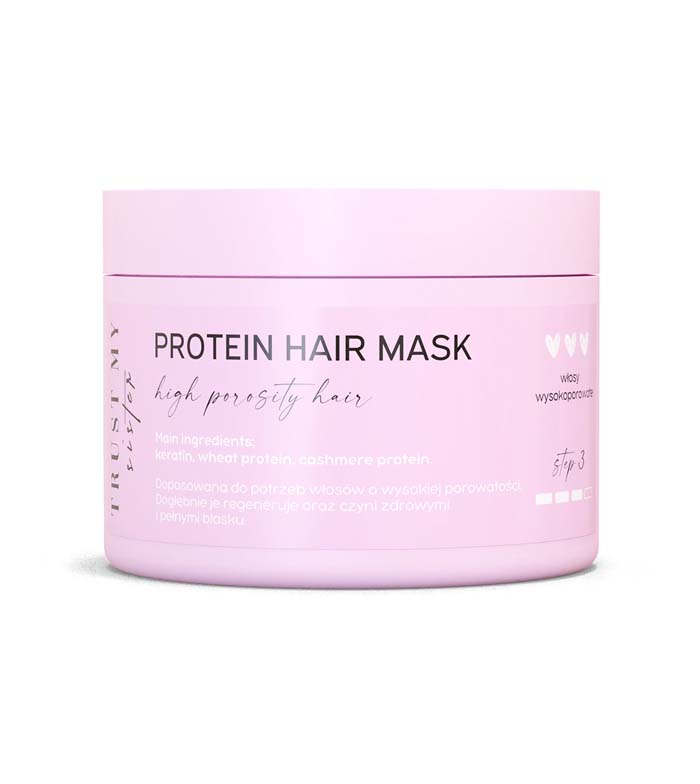 Eine Maske mit hochmolekularen Proteinen, geeignet für Haare mit hoher Porosität.