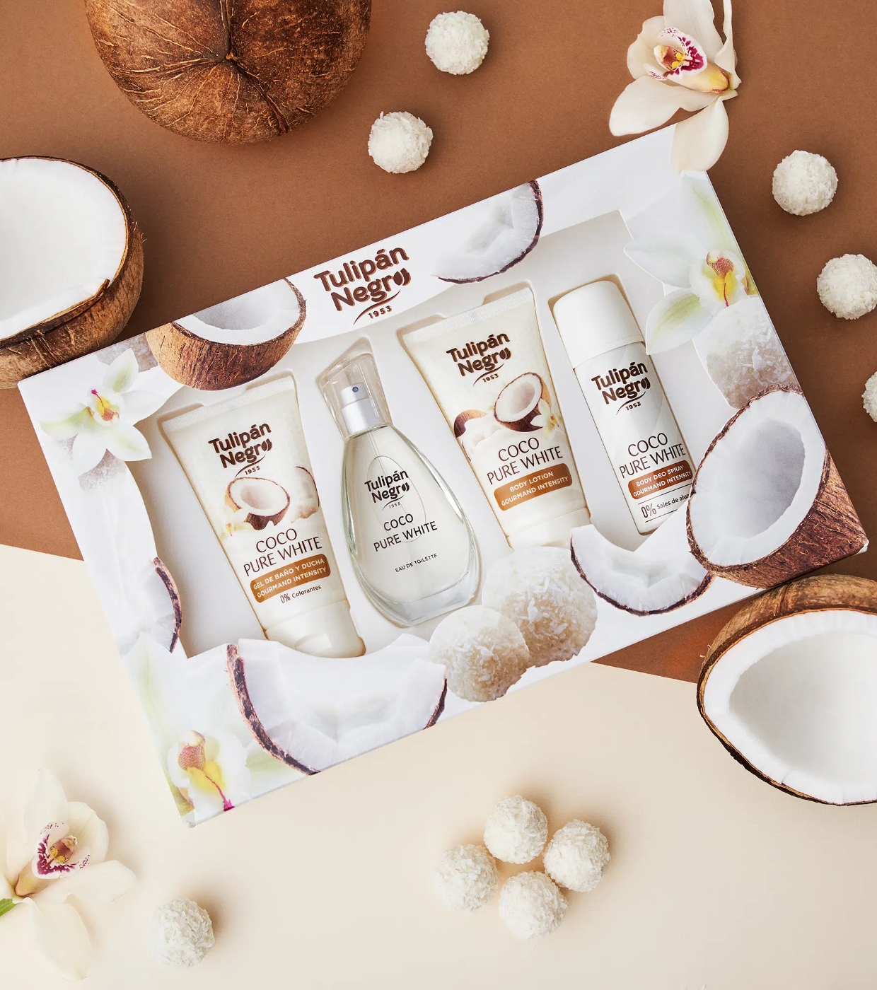 - 1 x Coco Pure White Eau de Cologne (50 ml): Dieses süchtig machende Aroma erinnert an Sommer, Strandspaziergänge und Nickerchen unter Palmen und bietet ein angenehmes Gefühl von Frische und Wohlbefinden, ideal für den täglichen Gebrauch durch die ganze Familie.
