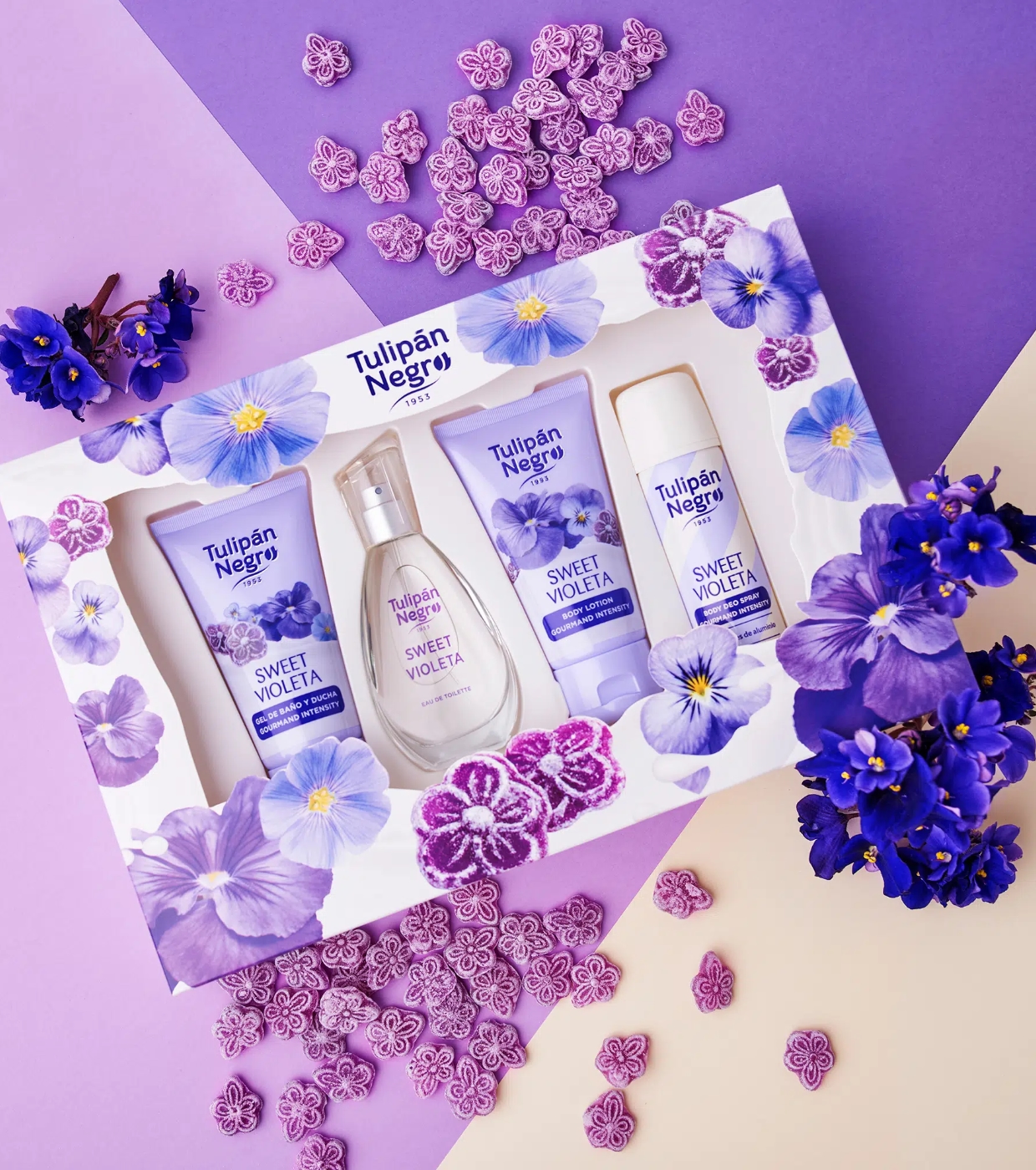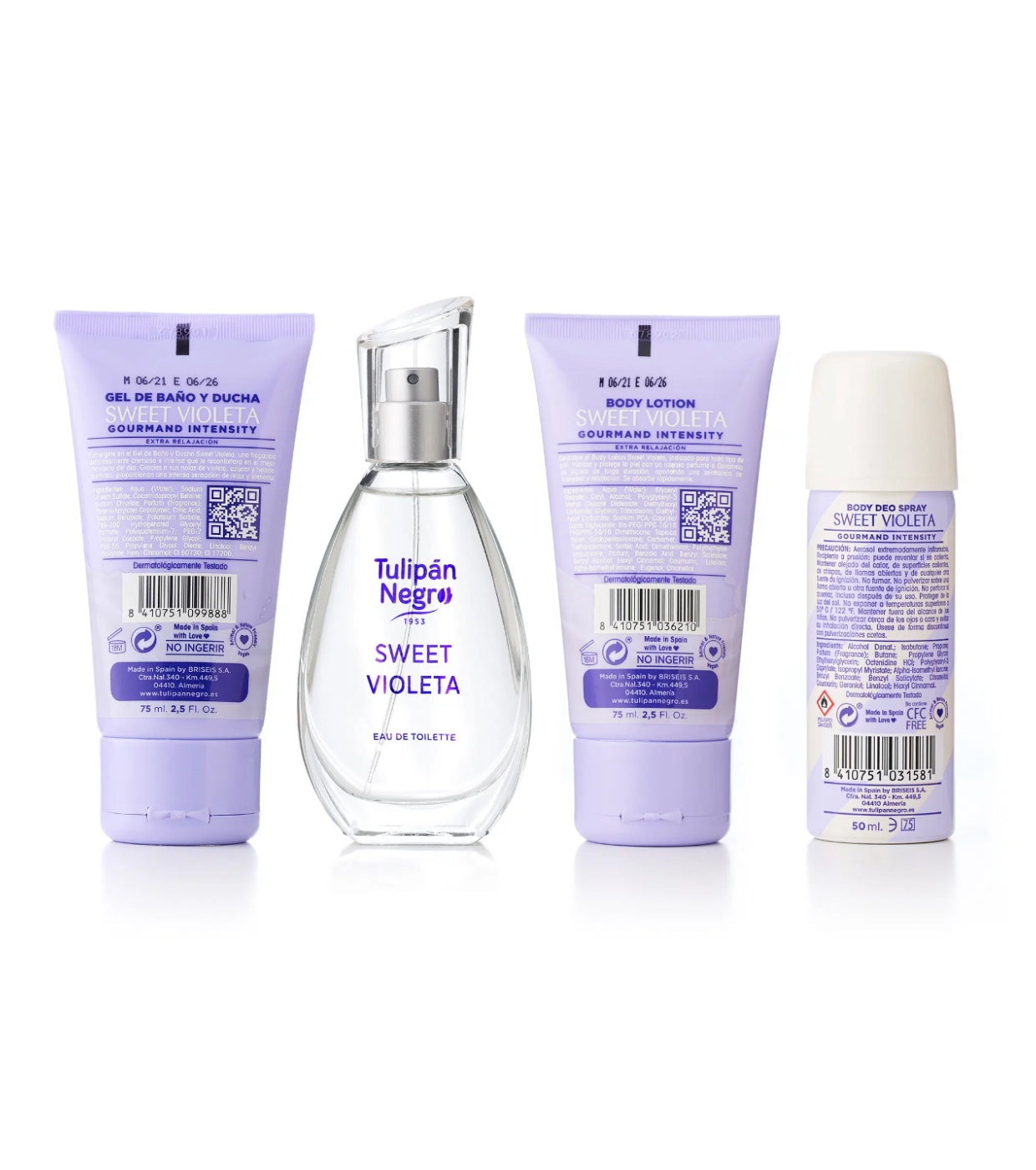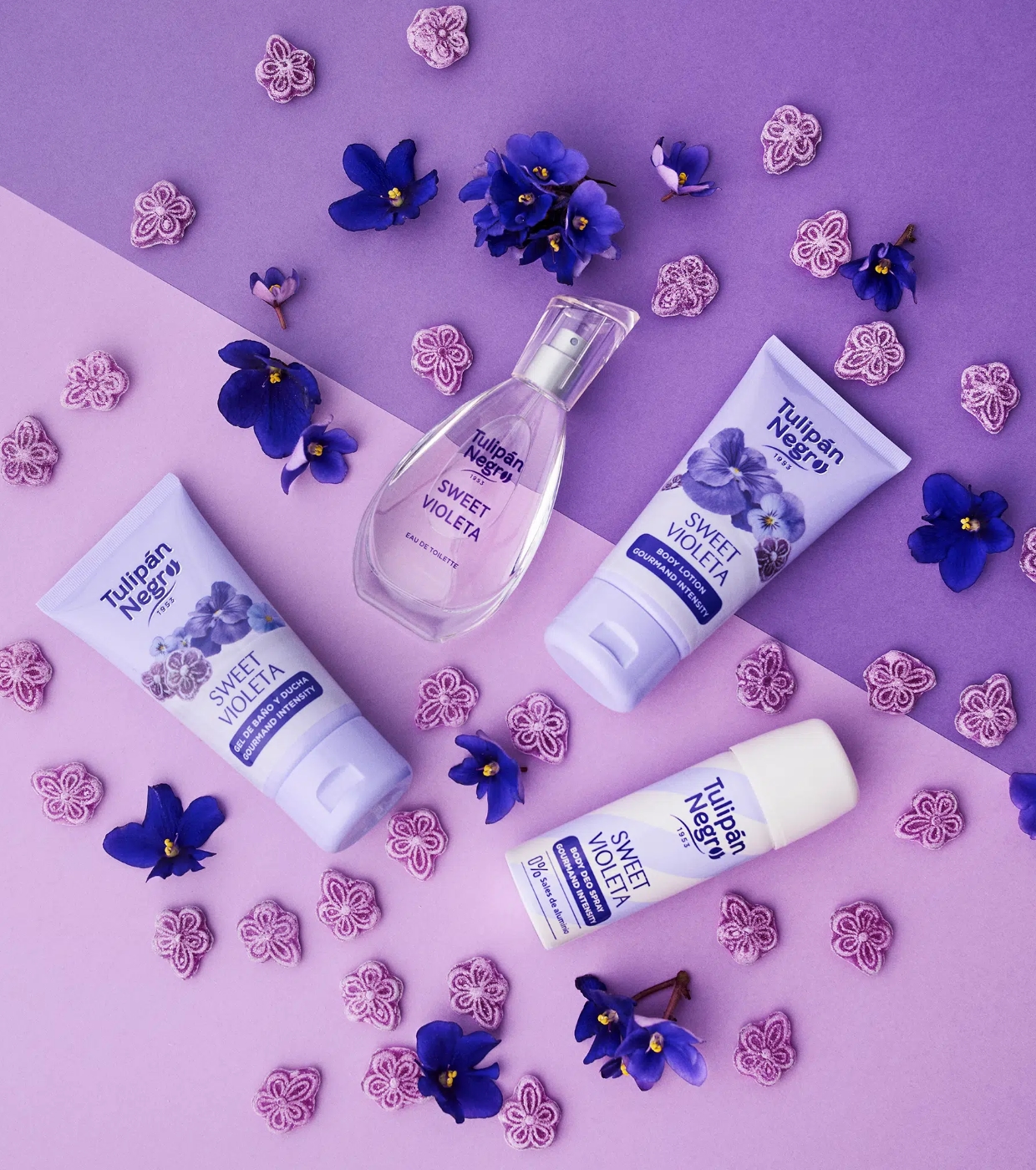 - 1 x Deodorant Spray (50 ml): Genießen Sie 24 Stunden Schutz mit dem Sweet Violet Deodorant Spray, das Sie in einen unglaublichen Duft von Veilchenbonbons hüllt.
