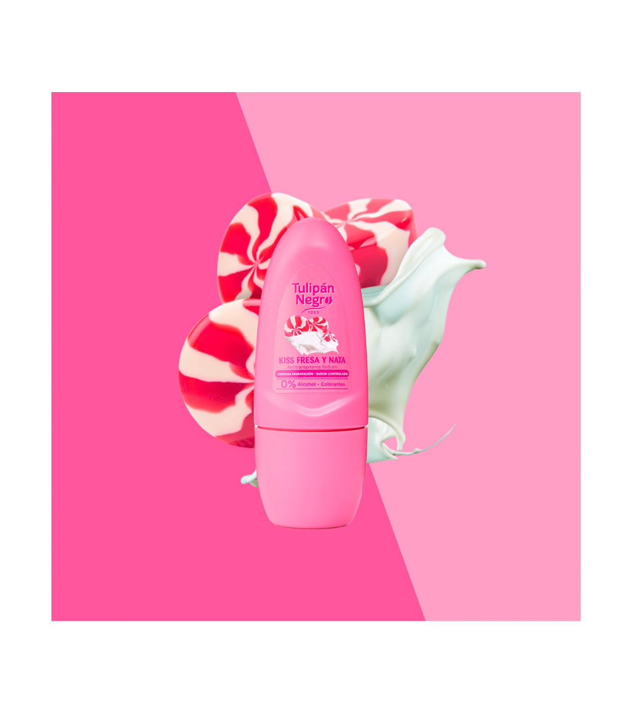 Das Black Tulip Roll-on-Transpirant-Deodorant mit Erdbeeren und Creme reguliert übermäßiges Schwitzen, sorgt für Ruhe und Geschmeidigkeit im Achselbereich und reizt die Haut nicht.