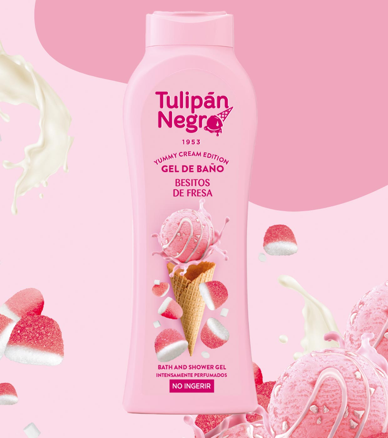 Badegel 650 ml Besitos de Fresa aus der Linie Yummy Cream Edition von Tulipán Negro.